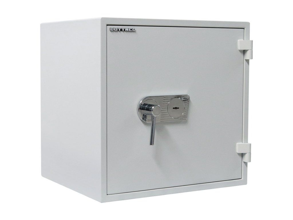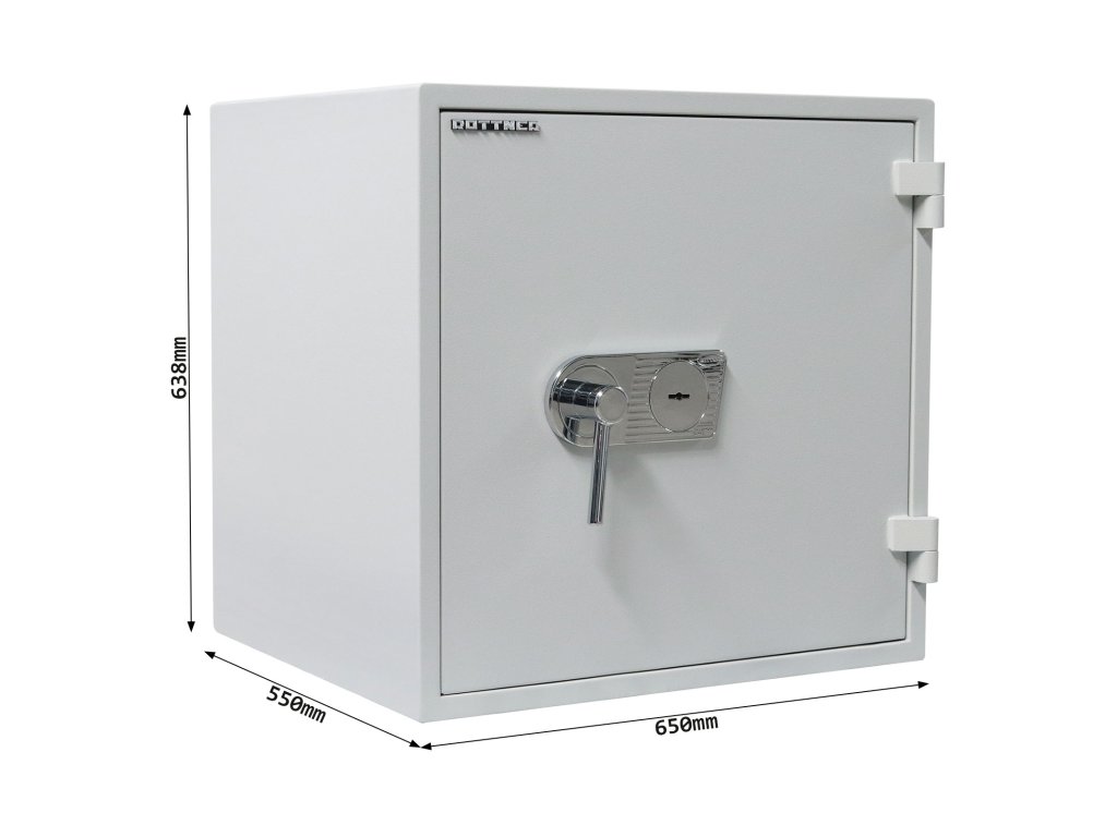 Certifikovaný trezorový zámek Bezpečnostní třída I (ČSN EN 1143-1) Ohnivzdornost po dobu 30 minut pro papír Vnitřní schránka 2 poličky uvnitř
