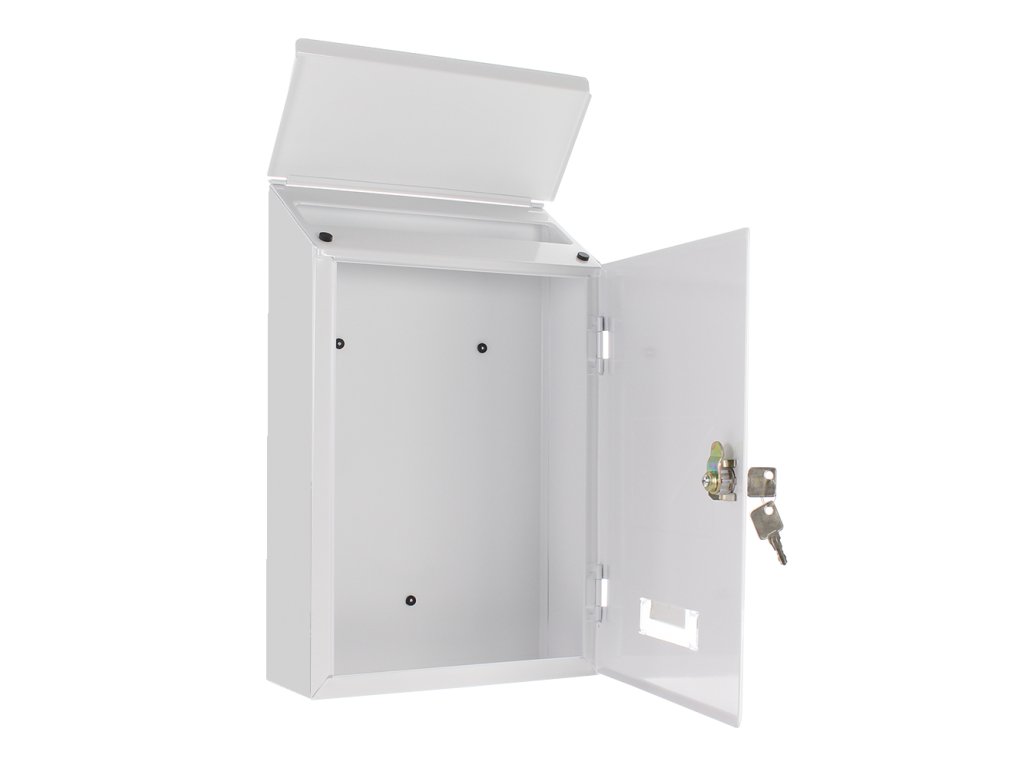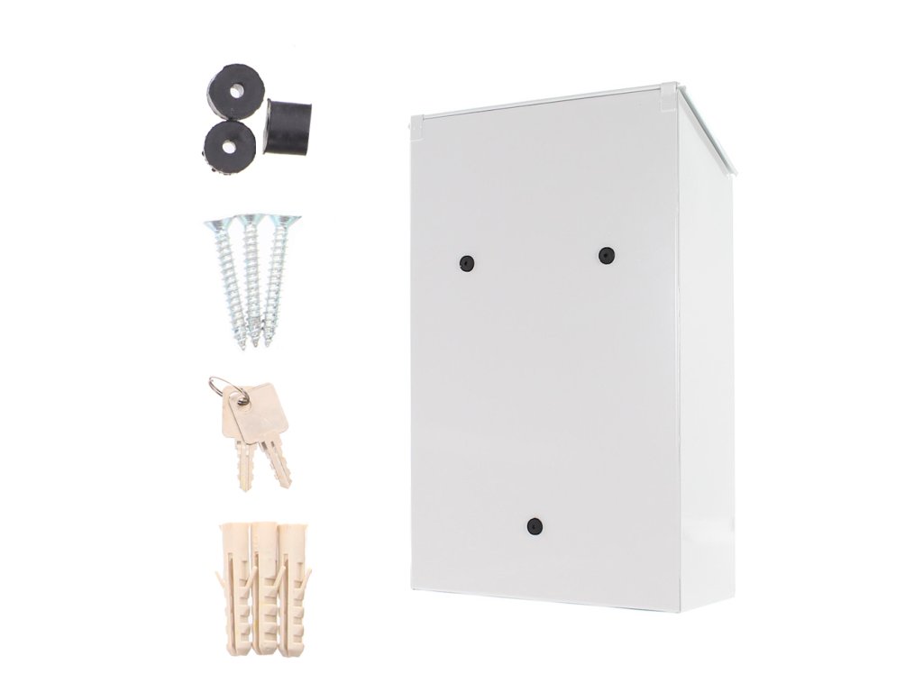 Hlavní výhody: Cylindrický zámek se 2 klíči Horní vhod pro poštu Jmenovka Odolnost proti povětrnostním vlivům Kvalitní ocelové provedení Bílá poštovní schránka Pisa nabízí univerzální barevné provedení a jednoduchý vzhled. Na předních dvířkách je vyražen symbol poštovní schránky. Pošta se vhazuje přes horní vhod, který je chráněn stříškou. Dešťová voda a jiné nečistoty tak neproniknou dovnitř poštovní schránky. Šikmá horní část schránky zároveň zajistí, že voda snadno steče dolů. Na dolní straně se nachází místo na jmenovku. Poštovní schránku vám dodáme zabalenou v kartónové krabici. Na zadní straně jsou připraveny otvory pro upevnění. Materiál k upevnění je součástí dodávky.Doplňkové parametry