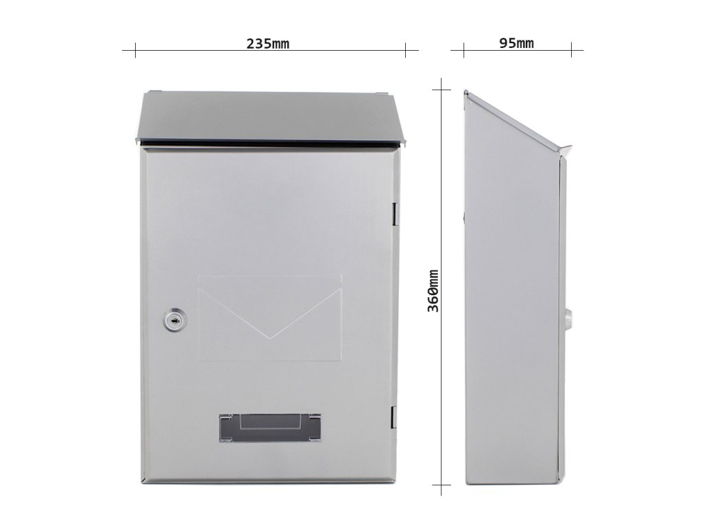 Hlavní výhody: Cylindrický zámek se 2 klíči Horní vhod pro poštu Jmenovka Odolnost proti povětrnostním vlivům Kvalitní ocelové provedení Stříbrná poštovní schránka Pisa nabízí klasický vzhled, který vhodně doplní fasádu výšho domu, plotu nebo zdi. Doručené bude uložena za klasickým cylindrickým zámkem se 2 klíči. Poštovní zásilky lze vhodit přes horní vhozový otvor, který je chráněn stříškou. Dešťová voda a jiné nečistoty tak neproniknou dovnitř schránky. Ve spodní části dvířek se nachází místo pro jmenovku. Zadní strana má připravené otvory na upevnění. Materiál k upevnění je součástí balení.Doplňkové parametry