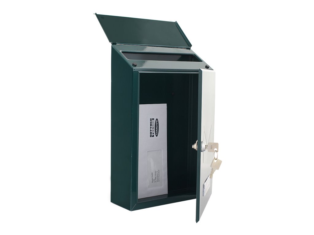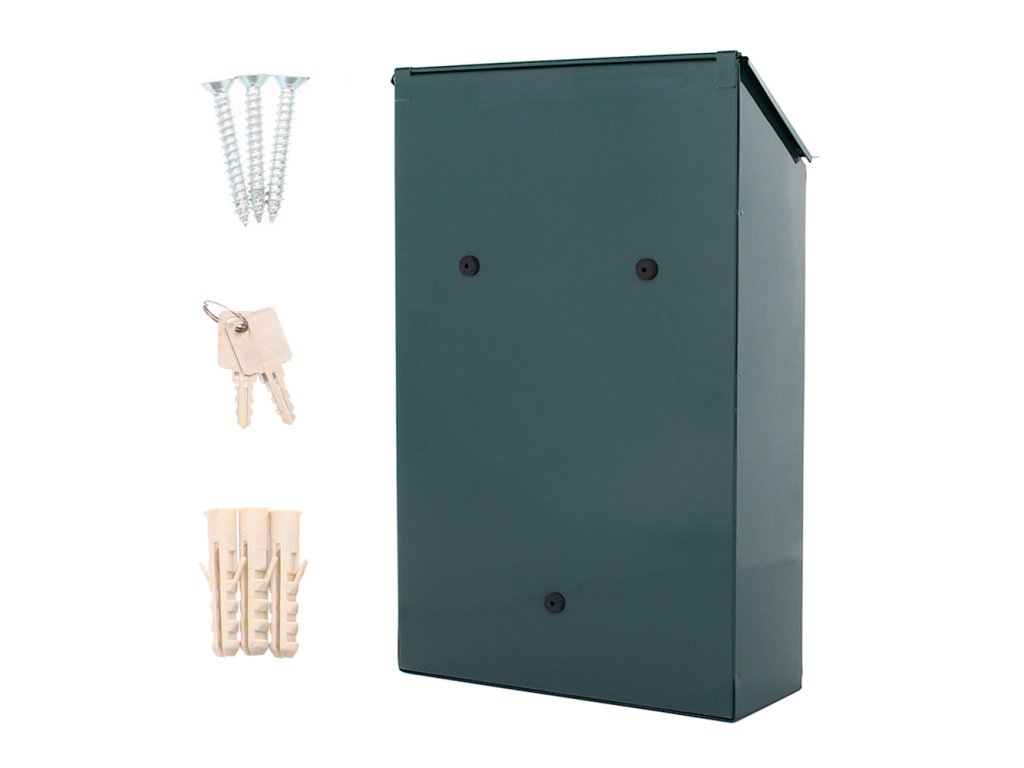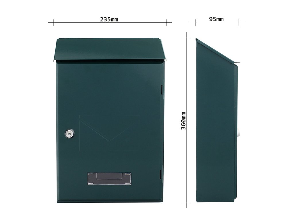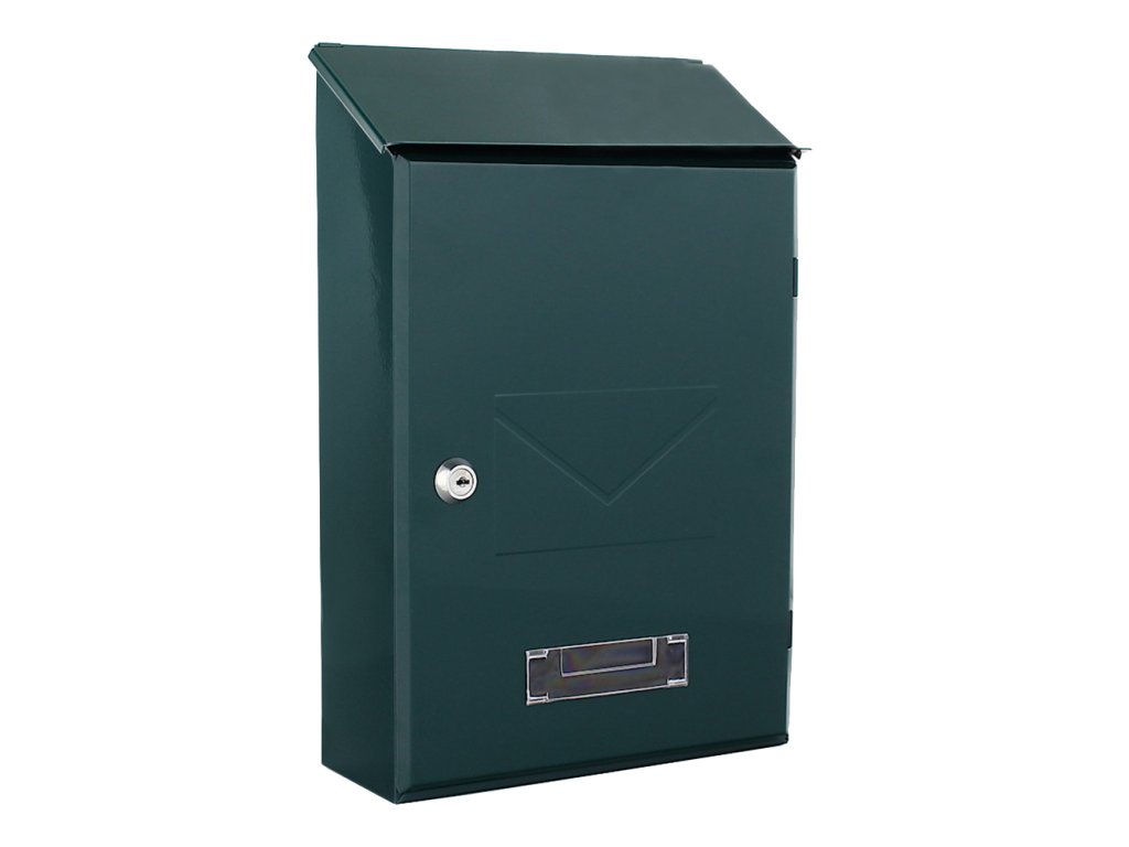 Hlavní výhody: Cylindrický zámek se 2 klíči Horní vhod pro poštu Jmenovka Odolnost proti povětrnostním vlivům Kvalitní ocelové provedení Decentní zelená poštovní schránka s vyraženým symbolem poštovní obálky na přední straně. Doručenou poštu chrání kvalitní ocelové provedení a cylindrický zámek. Poštovní zásilky lze vhazovat horním vhozem a následně na to je možné poštu pohodlně vybrat otevřením velkých předních dvířek. Ty se otevírají do pravé strany. Na spodní straně je umístěn prostor pro jmenovku. Poštovní schránku lze upevnit na zeď pomocí přiloženého upevňovacího materiálu. Schránku dodáváme zabalenou v kartónové krabici.Doplňkové parametry
