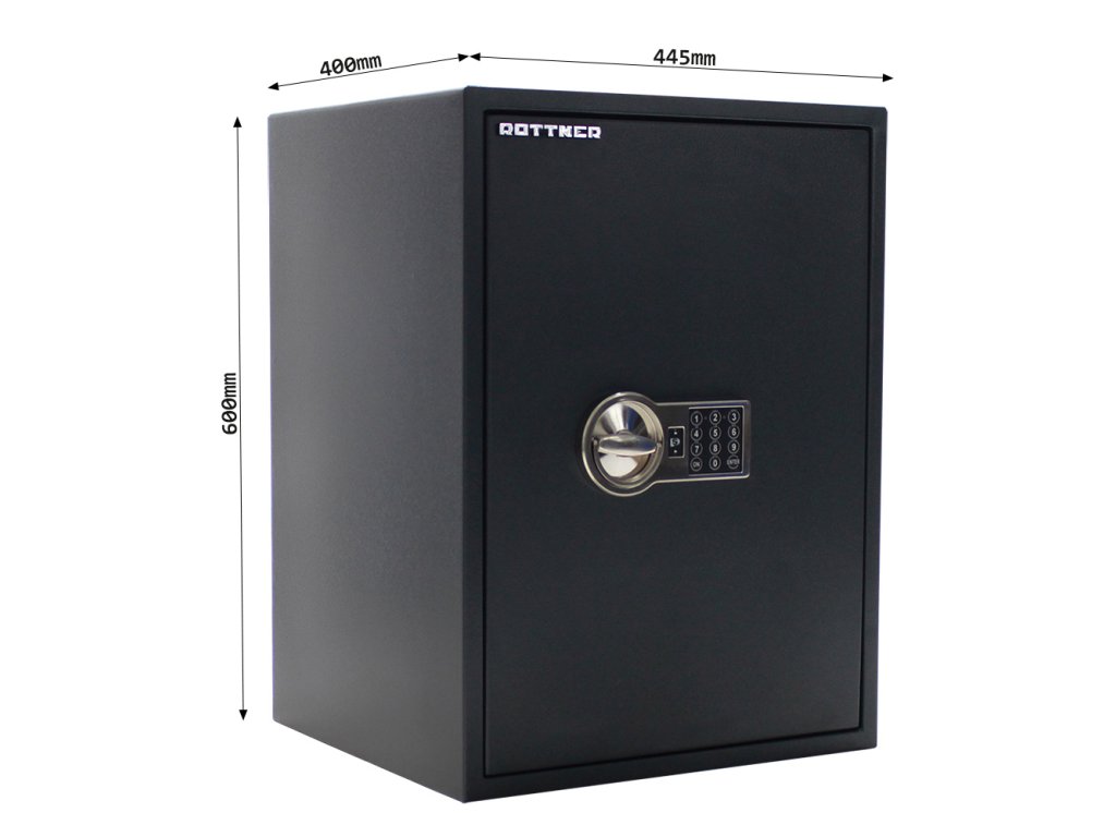 Hlavní výhody: Certifikovaný elektronický zámek Bezpečnostní třída S2 (ČSN EN 14450) Možnost úschovy zbraní a munice podle č. 190/2003 Sb Uzamykatelná vnitřní schránka s cylindrickým zámkem a 2 klíči Dvouplášťový nábytkový trezor Napájení 1 x 9V baterií (součástí balení) Tloušťka pláště dveří 70 mm Požární záhyb na dveřích Polička uvnitř Černý dvouplášťový trezor s certifikátem o bezpečnostní třídě S2 (ČSN EN 14450) a certifikovaným elektronickým zámkem. Vnitřek trezoru je poměrně variabilní a disponuje kromě posuvnou poličkou i samostatně uzamykatelnou schránkou v horní části trezoru. Napájení je řešeno prostřednictvím 9V baterie. V případě jejího vybití se vedle klávesnice nacházejí kontakty, ke kterým stačí přiložit náhradní baterii, zadat heslo a baterii uvnitř můžete vyměnit. V případě, že zadáte 3 krát po sobě nesprávné heslo, zámek se automaticky zablokuje na 5 minut. Rodinné šperky, dokumenty, šanony nebo jiné důležité cennosti tak budou bezpečně chráněny. Trezor můžete upevnit na podlahu nebo zeď pomocí přiloženého kotvícího materiálu. Kování zvyšuje celkovou vnější hloubku trezoru o 15 až 60 mm (v závislosti na konkrétním modelu).Doplňkové parametry