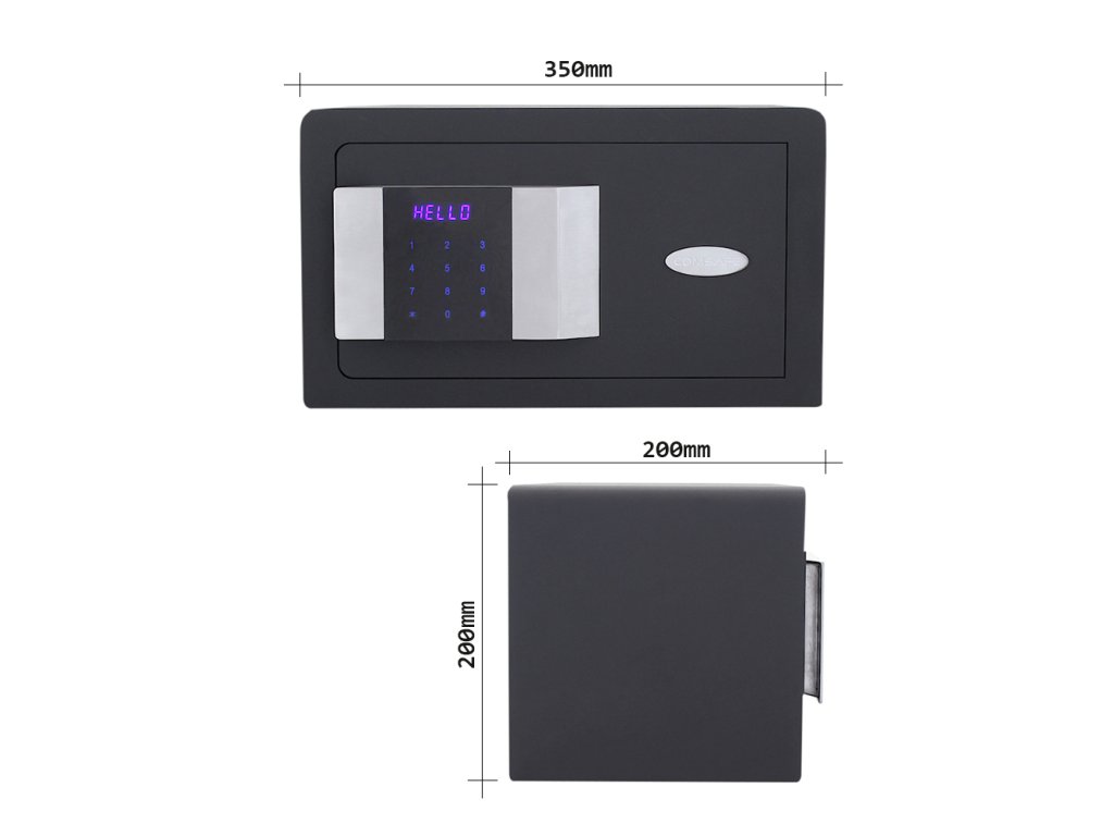 Hlavní výhody: Elektronický zámek s 2 klíči Dotykový LED panel a vnitřní osvětlení Napájení 4 x 1,5V AA baterií (nejsou součástí balení) Polička uvnitř a polstrované vnitřek Dveřní plášť má tloušťku 6 mm Mechanické nouzové otevírání s trezorovým zámkem a 2 klíči Otvory na ukotvení na spodní a zadní straně trezoru Nejmenší nábytkový sejf z modelové řady Prestige nabízí bezpečné uložení cenností, drobných šperků nebo cestovních dokladů. Zamykání elektronickým zámkem a možnost mechanického nouzového otevírání. Výhodou je podsvícený LED panel pro snadnější zadávání kódu. Napájení je klasickými 1,5V bateriemi. Vnitřek sejfu je vybaveno osvětlením, polstrováním a poličkou. Sejf má otvory na spodní a zadní straně a jeho upevnění tak bude hračkou. Kotvící materiál je součástí dodávky. Kování zámku zvyšuje celkovou vnější hloubku trezoru o 20 mm.Doplňkové parametry
