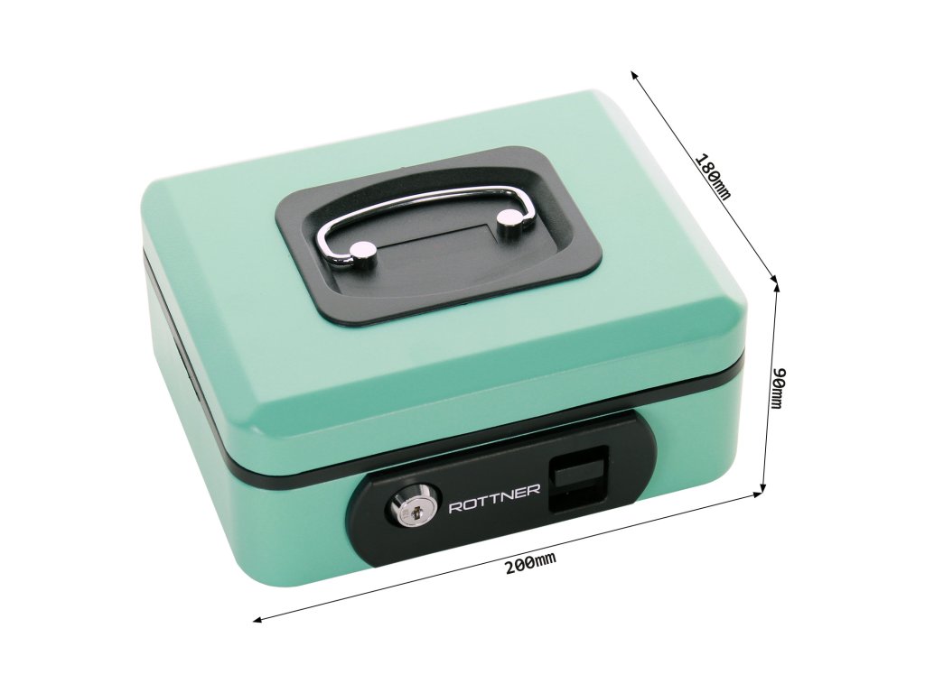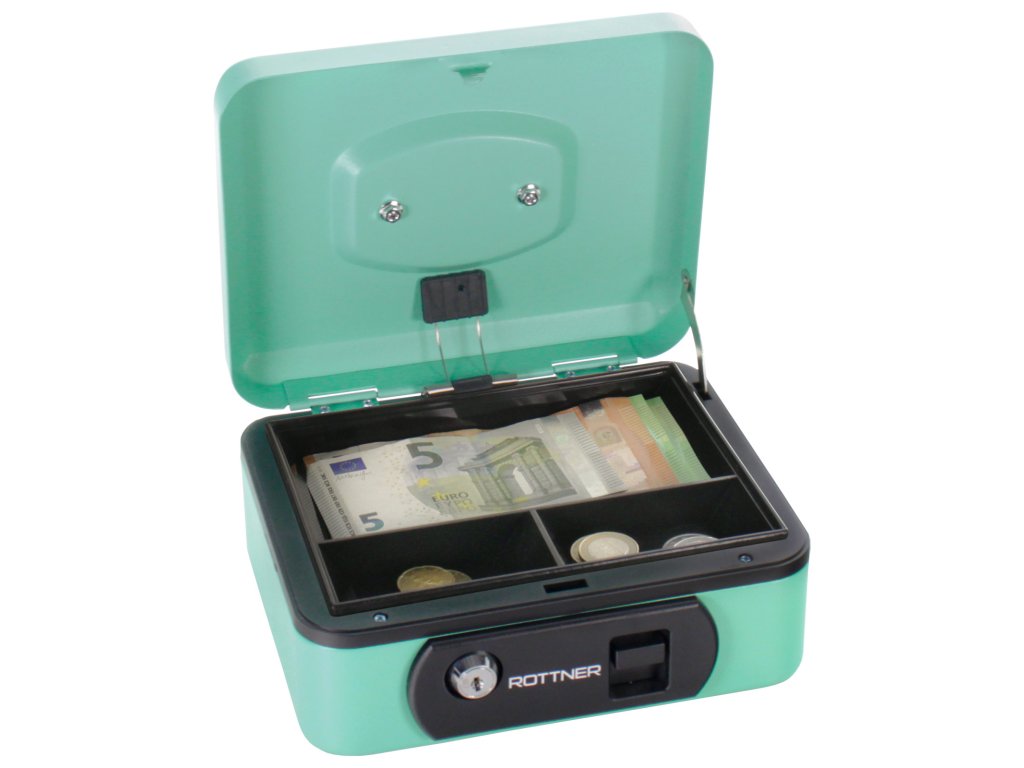Hlavní výhody: Rychlé otevření stisknutím Cylindrický zámek se 2 klíči Vhodná pro mince i bankovky Kvalitní ocelový plech a zapuštěná rukojeť Pokladnička Rottner disponuje klasickým cylindrickým zámkem. Zámek má tlačítko, které po stisku automaticky otevře víko pokladničky. Uvnitř pokladničky je místo pro mince a bankovky různých nominálních hodnot. Vnitřní plastovou přihrádku lze v případě potřeby vyjmout. Zapuštěná rukojeť umožňuje snadný a pohodlný přenos.Doplňkové parametry