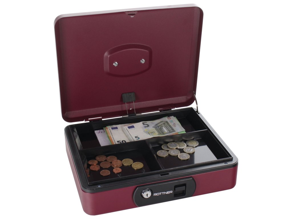 Hlavní výhody: Rychlé otevření stisknutím Cylindrický zámek se 2 klíči Vhodná pro mince i bankovky Kvalitní ocelový plech a zapuštěná rukojeť Pokladnička Rottner disponuje klasickým cylindrickým zámkem. Zámek má tlačítko, které po stisku automaticky otevře víko pokladničky. Uvnitř pokladničky je místo pro mince a bankovky různých nominálních hodnot. Vnitřní plastovou přihrádku lze v případě potřeby vyjmout. Zapuštěná rukojeť umožňuje snadný a pohodlný přenos.Doplňkové parametry