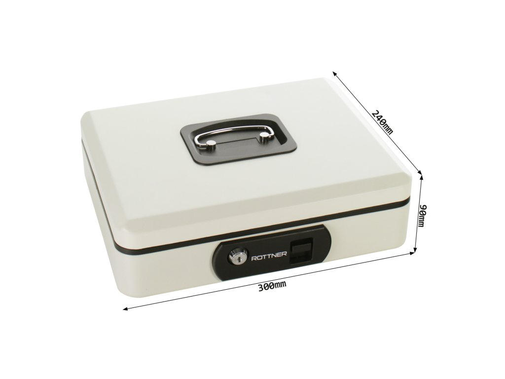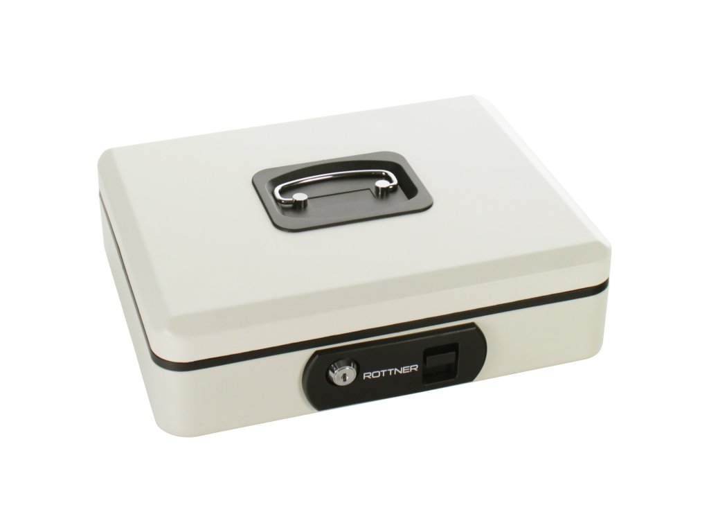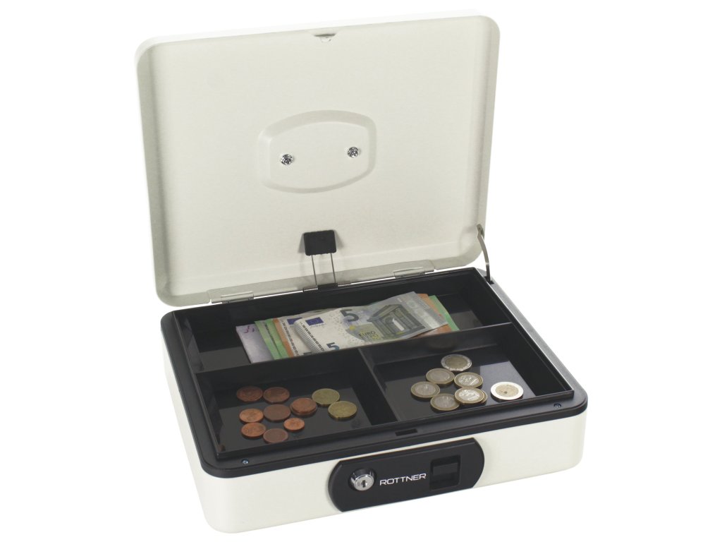 Hlavní výhody: Rychlé otevření stisknutím Cylindrický zámek se 2 klíči Vhodná pro mince i bankovky Kvalitní ocelový plech a zapuštěná rukojeť Pokladnička Rottner disponuje klasickým cylindrickým zámkem. Zámek má tlačítko, které po stisku automaticky otevře víko pokladničky. Uvnitř pokladničky je místo pro mince a bankovky různých nominálních hodnot. Vnitřní plastovou přihrádku lze v případě potřeby vyjmout. Zapuštěná rukojeť umožňuje snadný a pohodlný přenos.Doplňkové parametry