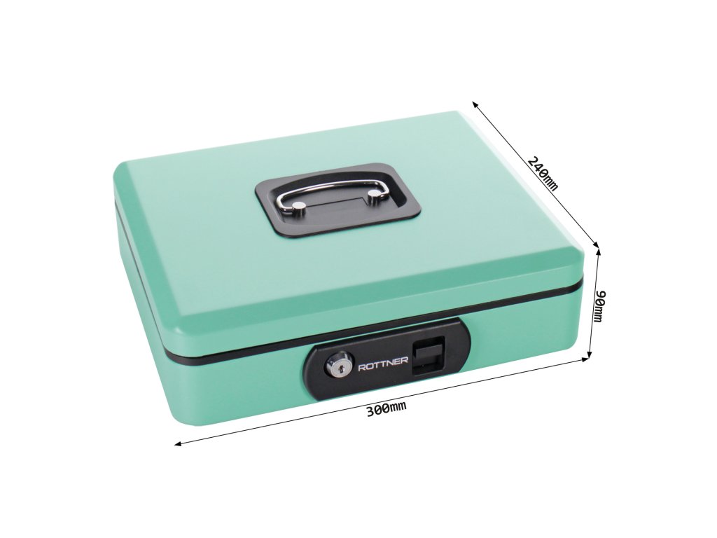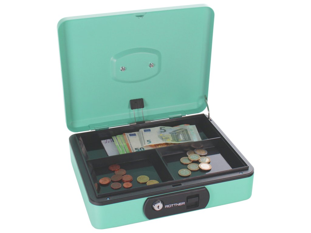 Hlavní výhody: Rychlé otevření stisknutím Cylindrický zámek se 2 klíči Vhodná pro mince i bankovky Kvalitní ocelový plech a zapuštěná rukojeť Pokladnička Rottner disponuje klasickým cylindrickým zámkem. Zámek má tlačítko, které po stisku automaticky otevře víko pokladničky. Uvnitř pokladničky je místo pro mince a bankovky různých nominálních hodnot. Vnitřní plastovou přihrádku lze v případě potřeby vyjmout. Zapuštěná rukojeť umožňuje snadný a pohodlný přenos.Doplňkové parametry