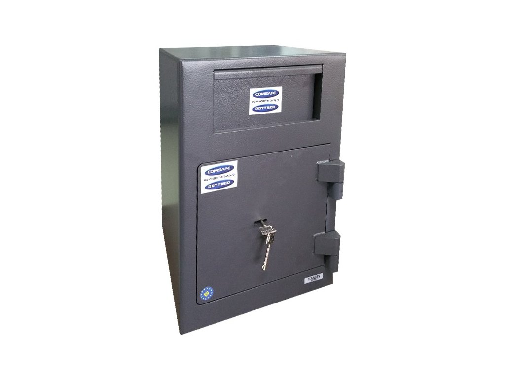 Hlavní výhody: Certifikovaný trezorový zámek se 2 klíči Bezpečnostní třída S1 (ČSN EN 14450) Bezpečný vhozový mechanizmus Jednoplášťový trezor 3-stranný uzamykací mechanizmus Korpus tloušťky 5 mm a dveře tloušťky 5 mm Otvory na ukotvení na spodní straně trezoru Antracitový vhozový trezor s certifikovaným trezorovým zámkem. Ideální řešení všude tam, kde je třeba pracovat s hotovostí nebo menšími předměty a průběžně je uschovat. Přední vhozový otvor je chráněn proti vniknutí. Trezor má certifikát bezpečnostní třídy S1 (ČSN EN 14450), a tak si můžete být jisti, že uložené věci budou v bezpečí. Jednoplášťové provedení s tloušťkou dveří i korpusu 5 mm disponuje dveřmi s 3-stranným uzamykacím mechanismem. Po obdržení můžete trezor okamžitě ukotvit. Kotvící materiál je totiž součástí dodávky. Kování zámku zvyšuje celkovou vnější hloubku trezoru o 25 mm.Doplňkové parametry