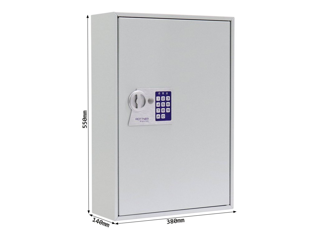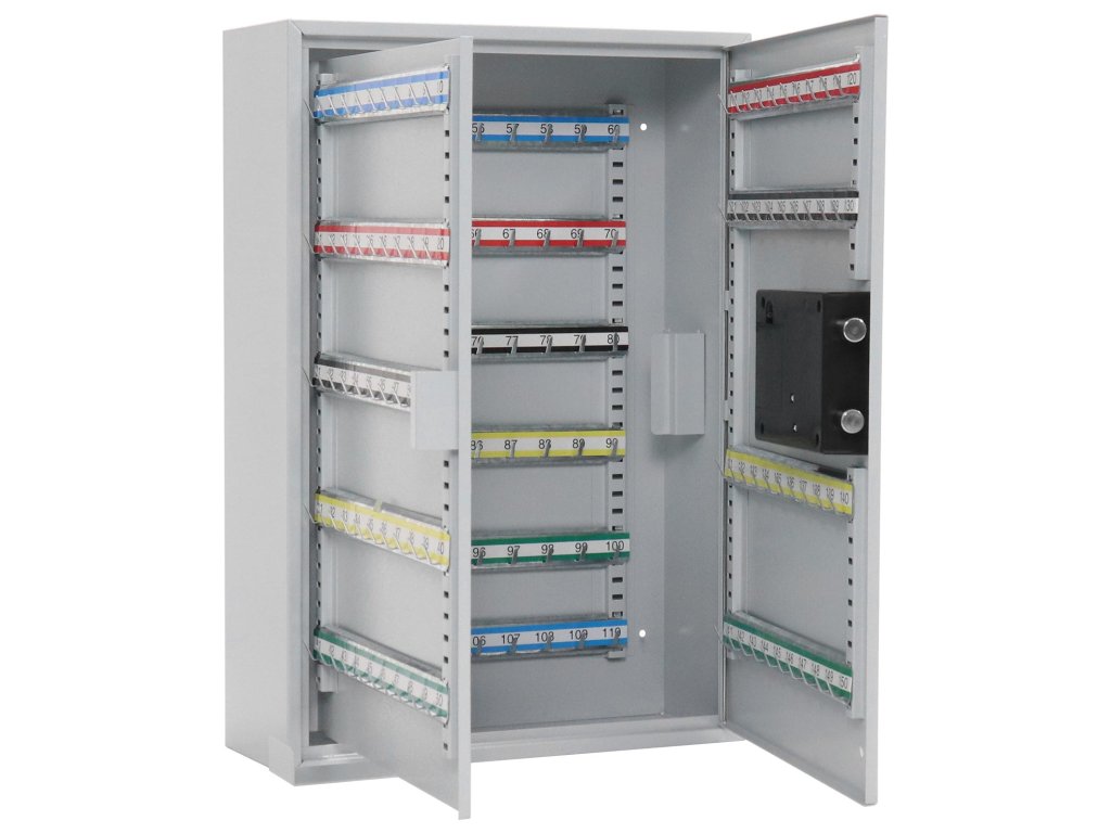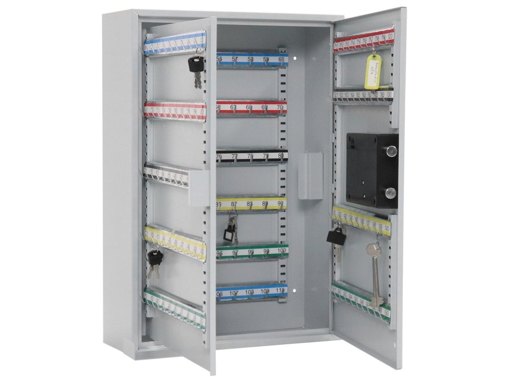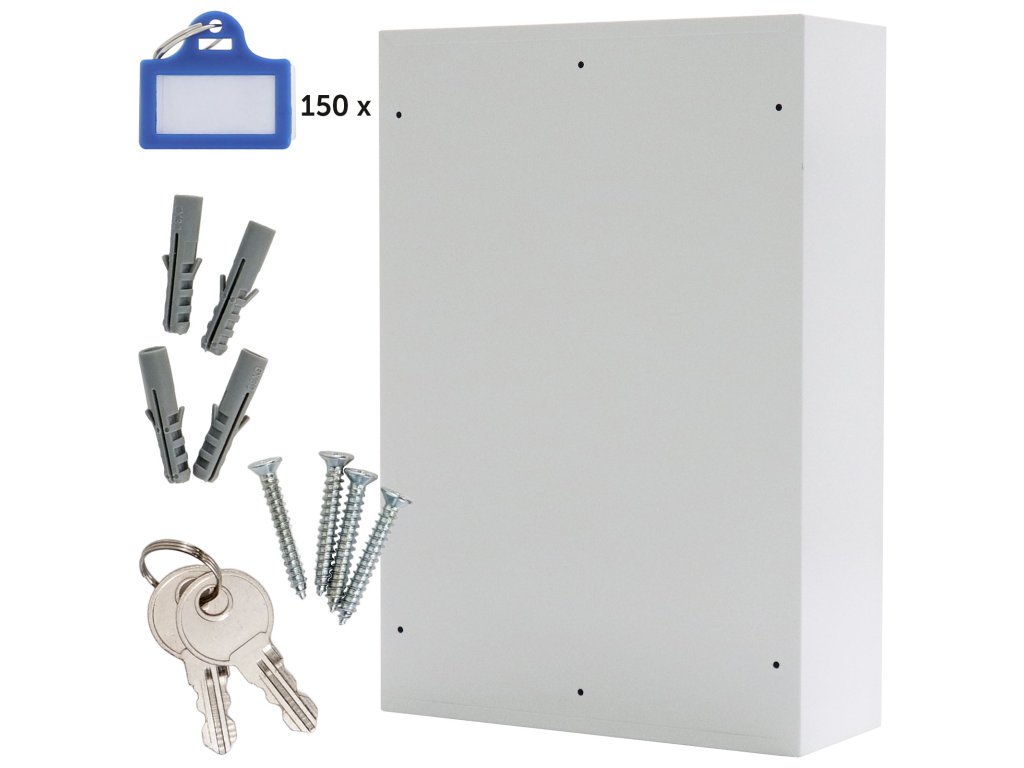 Hlavní výhody: Elektronický zámek Pozinkované háčky na klíče (150 háčků) Napájení 4 x 1,5V AA bateriemi (nejsou součástí balení) Dodávané spolu se 150 visačkami Výškově nastavitelná lišta s háčky Fixně umístěny háčky na lištách Upevnění na stěnu Mechanické nouzové otevírání s cylindrickým zámkem a 2 klíči Kvalitní ocelové provedení Kvalitní ocelová skříňka na klíče, do které uschováte až 150 klíčů. Pěkně pohromadě a přitom stále přehledně roztříděné. Ochrání jejich elektronický zámek s mechanickým nouzovým otevíráním. Energii pro zámek zajišťují klasické 1,5V AA baterie. Uvnitř najdete výškově nastavitelné lišty spolu s fixně umístěnými háčky na zavěšení klíčů. Lišty jsou barevně rozlišeny a jednotlivé háčky mají své číslo. Skříň se jednoduše upevní na zeď pomocí připravených otvorů v zadní části. Materiál k upevnění je součástí dodávky.Doplňkové parametry