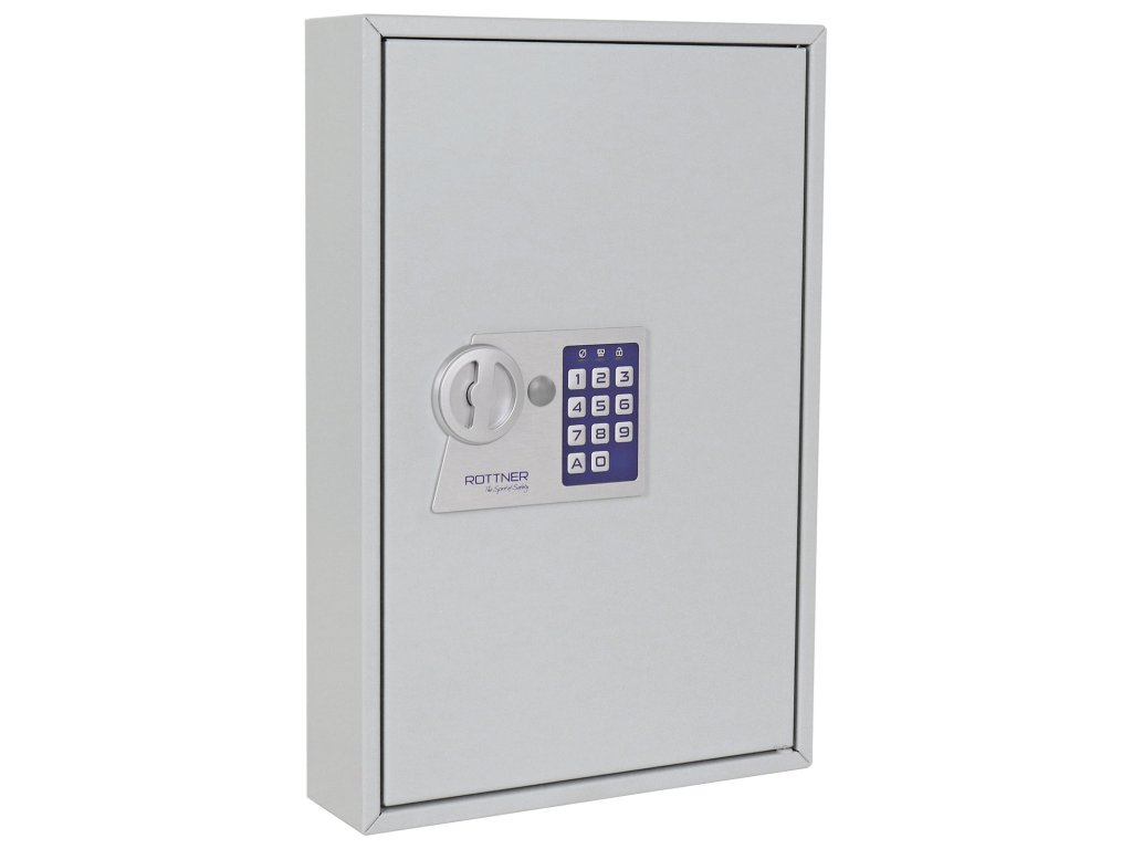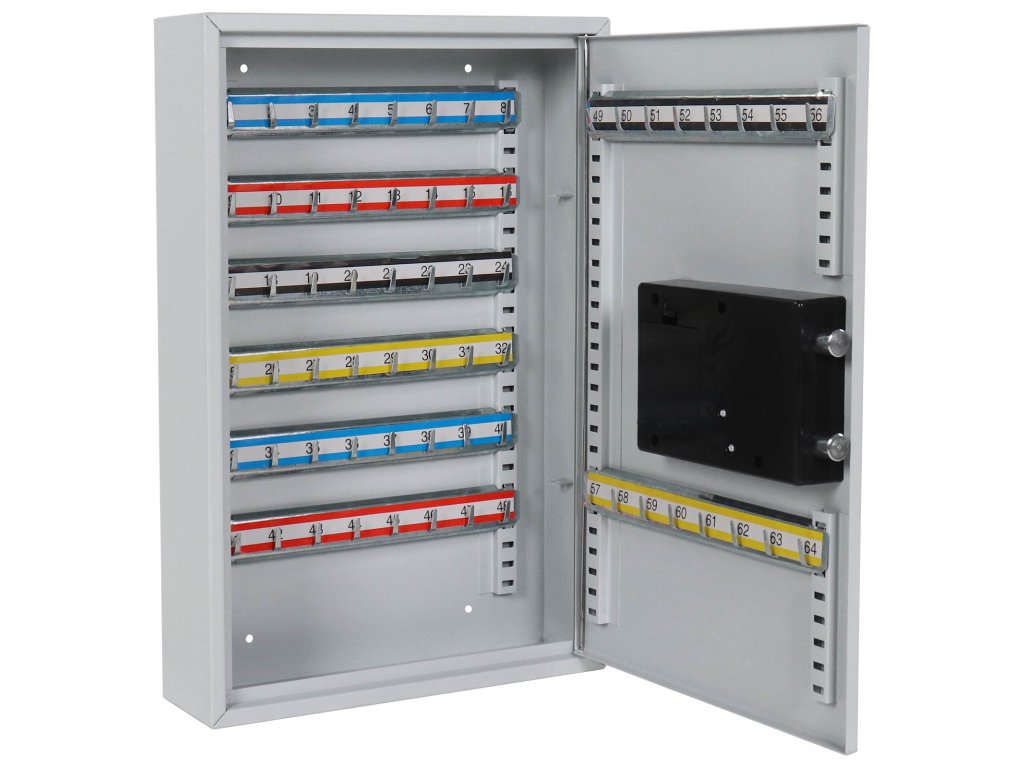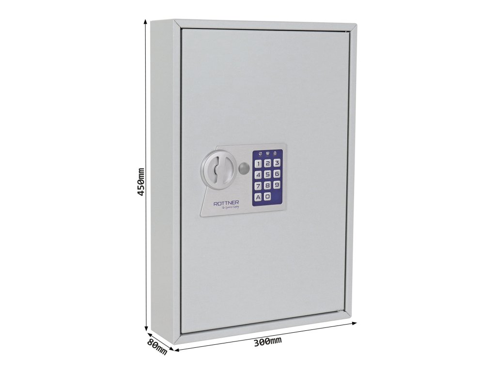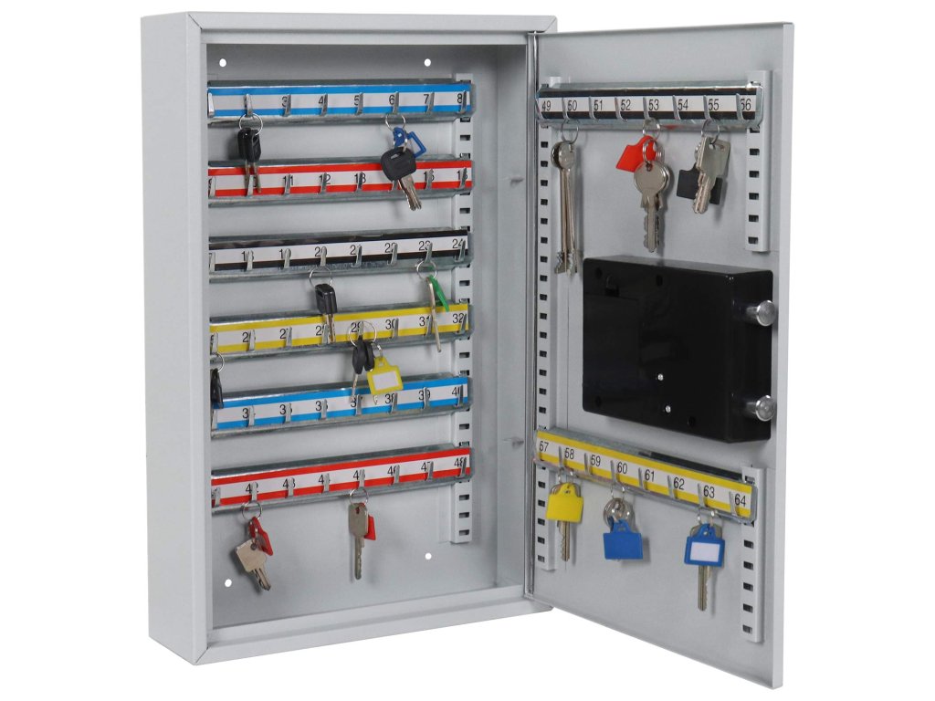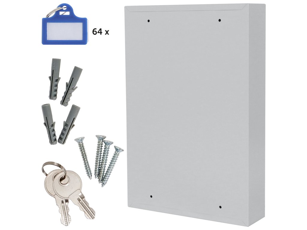 Hlavní výhody: Elektronický zámek s 2 klíči Napájení 4 x 1,5V AA bateriemi (nejsou součástí balení) Pozinkované háčky na klíče (64 háčků) Dodávané spolu se 64 visačkami Výškově nastavitelná lišta s háčky Fixní umístění háčků Upevnění na stěnu Mechanické nouzové otevírání s cylindrickým zámkem a 2 klíči Kvalitní ocelové provedení Moderní skříňka na klíče nabízí pohodlné otevírání prostřednictvím elektronického zámku s mechanickým nouzovým otevíráním a napájením na klasické 1,5V AA baterie. Po zadání hesla stačí pootočit rukojetí, čímž se dveře otevřou a tím se šetří baterie. Přehledná klávesnice poslouží na bezproblémové zadání hesla. Uvnitř skříňky naleznete celkově 64 háčků na klíče, které jsou umístěny na posuvných lištách. Lišty jsou pro větší přehled barevně a číselně rozlišené. Skříňku jednoduše připevníte na stěnu pomocí přiloženého kotvícího materiálu.Doplňkové parametry