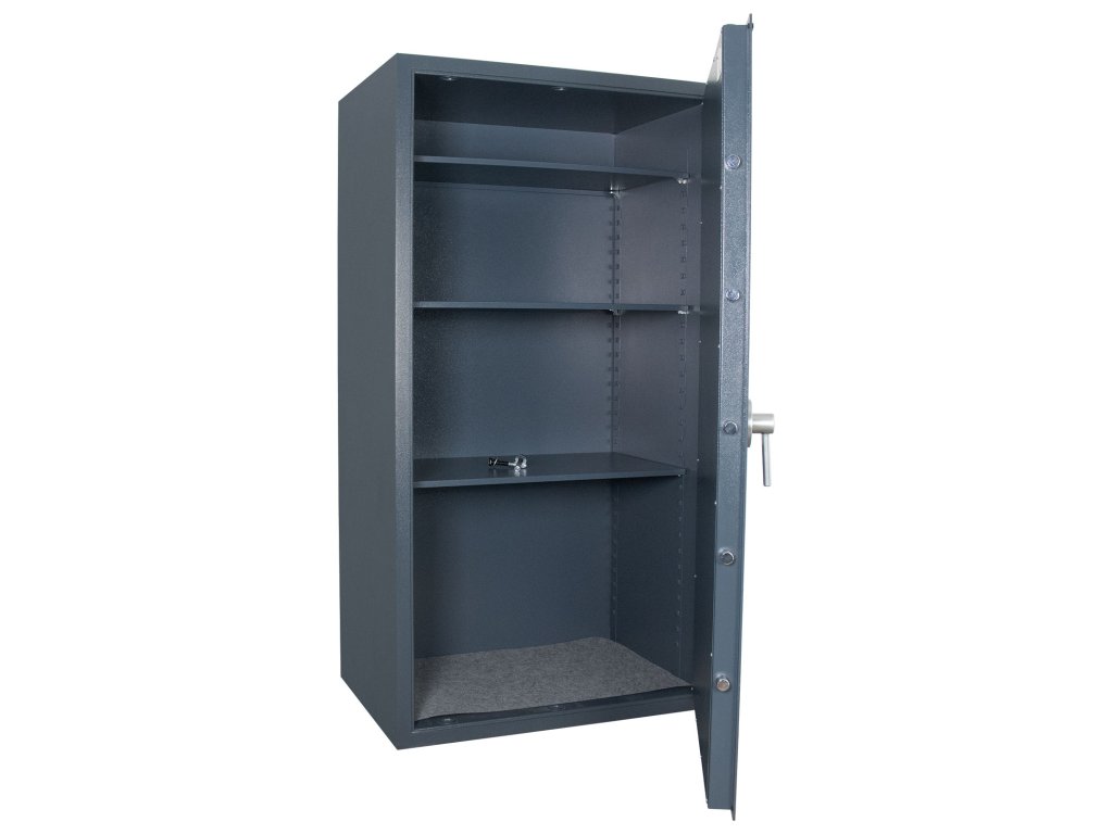 Hlavní výhody: Certifikovaný elektronický zámek Bezpečnostní třída 0 (ČSN EN 1143-1) Možnost úschovy i zbraní a munice podle č. 190/2003 Sb. z. Napájení 1 x 9V baterií (není součástí balení) 3-stranný uzamykací mechanizmus Dvouplaštový korpus 3 nastavitelné poličky uvnitř Tloušťka dveří 5 mm Elektronické nouzové otevírání externí baterií Otvory na ukotvení na spodní straně trezoru Nábytkový trezor Samoa 160 EL v provedení antracit disponuje certifikovaným elektronickým zámkem. Zámek i s klávesnicí je napájen klasickou 9V baterií a v případě vybití baterie je možné použít vnější kontakty pro nouzové elektronické otevření. Trezor má bezpečnostní třídu 0 (ČSN EN 1143-1) a kromě cenností, šperků, dokladů a šanonů v něm jednoduše uschováte i krátké zbraně a munici. Trezorové dveře jsou tlusté 5 mm a po zadání kódu se zamknou 3-stranným uzamykacím mechanismem. Uvnitř trezoru s dvouplášťovým korpusem se nacházejí 3 poličky pro lepší rozdělení vnitřku. Na spodní straně trezoru jsou připraveny otvory pro ukotvení. Kotvící materiál je součástí balení. Kování zámku zvyšuje celkovou vnější hloubku trezoru o 60 mm.Doplňkové parametry