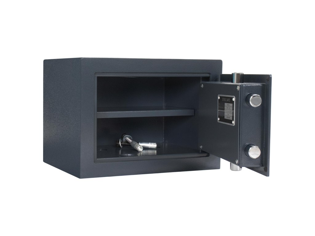 Hlavní výhody: Certifikovaný elektronický zámek Bezpečnostní třída 0 (ČSN EN 1143-1) Možnost úschovy i zbraní a munice podle č. 190/2003 Sb. z. Napájení 1 x 9V baterie (není součástí balení) 3-stranný uzamykací mechanizmus Dvouplaštový trezor Nastavitelná polička uvnitř Tloušťka dveří 5 mm Elektrické nouzové otevírání externí baterií Otvory na ukotvení na spodní straně trezoru Náš nejmenší nábytkový trezor z modelové řady Samoa má certifikovaný elektronický zámek s vnějšími kontakty pro přiložení náhradní baterie. Zámek je napájen klasickou 9V baterií. Kromě certifikovaného zámku je trezor držitelem certifikátu o bezpečnostní třídě 0 (ČSN EN 1143-1). Dovnitř trezoru se vejdou menší cennosti, šperky, cestovní doklady ale i menší kasička. Také můžete v trezoru Samoa 26 EL uschovat i krátké zbraně a munici. Po zadání kódu se dveře spolehlivě uzavřou díky 3-stranná uzamykacímu mechanismu. Uvnitř najdete i poličku. Na spodní straně trezoru jsou připraveny otvory pro ukotvení. Kotvící materiál je součástí dodávky. Kování zámku zvyšuje celkovou vnější hloubku trezoru o 15 mm.Doplňkové parametry