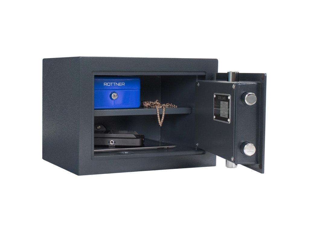 Certifikovaný elektronický zámek Bezpečnostní třída 0 (ČSN EN 1143-1) Napájení 1 x 9V baterie (není součástí balení) Nastavitelná polička
