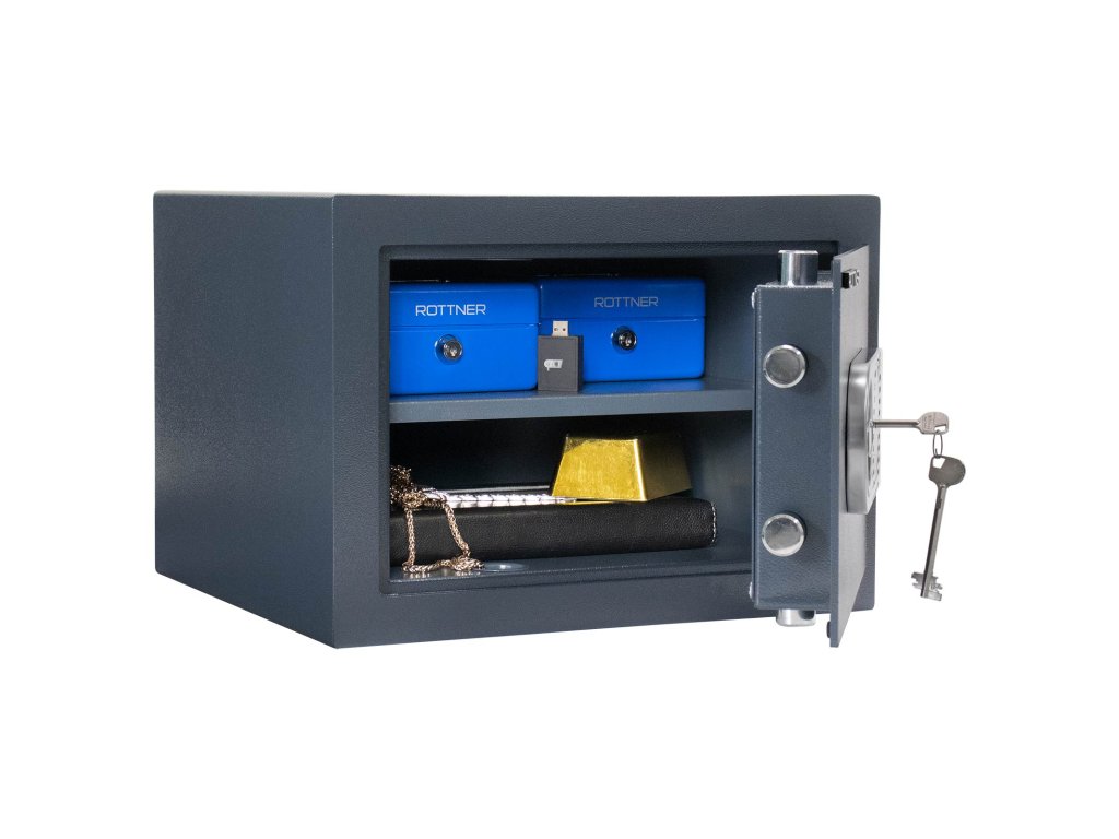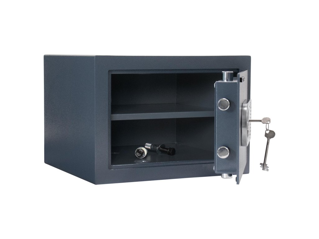 Hlavní výhody: Certifikovaný trezorový zámek Bezpečnostní třída 0 (ČSN EN 1143-1) Možnost úschovy i zbraní a munice podle č. 190/2003 Sb. z. 3-stranný uzamykací mechanizmus Dvouplaštový trezor Nastavitelná polička uvnitř Tloušťka dveří 5 mm Otvory na ukotvení na spodní straně trezoru Antracitový trezor Samoa 40 zajistí bezpečné uložení menších cenností, cestovních dokladů nebo menších šperků. Uvnitř můžete uložit i krátké zbraně a munici. Trezor je osazen certifikovaným trezorovým zámkem a dodáván také spolu s 2 klíči. Disponuje i certifikátem a bezpečnostní třídě 0 (ČSN EN 1143-1). Dveře o tloušťce korpusu 5 mm se po otočení klíčem uzamknou díky 3-stranná mechanismu. Vnitřek trezoru je možné předělit dodávanou poličkou, aby věci byly hezky na svém místě Na spodní straně jsou připraveny otvory pro ukotvení. Kotvící materiál je součástí balení. Kování zámku zvyšuje celkovou vnější hloubku trezoru o 15 mm.Doplňkové parametry