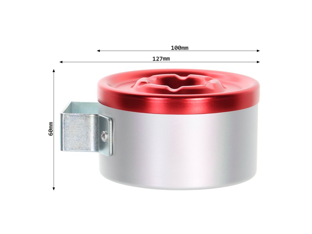 Hlavní výhody: Systém pro snadné vyprazdňování Snadná údržba a čištění Kvalitní hliníkové zpracování Malý nástěnný popelník s jasně viditelným červeným víkem a drážkami na odložení cigarety. Výhodou popelníku je systém jednoduchého vyprazdňování. Popelník se snadno udržuje a čistí, což usnadňuje jeho každodenní použití. Popelník je vyhotoven z kvalitního hliníku. Odolá tak případným špatným povětrnostním podmiankam a zároveň nerezaví. Popelník lze upevnit pomocí dodávaného upevňovacího materiálu.Doplňkové parametry