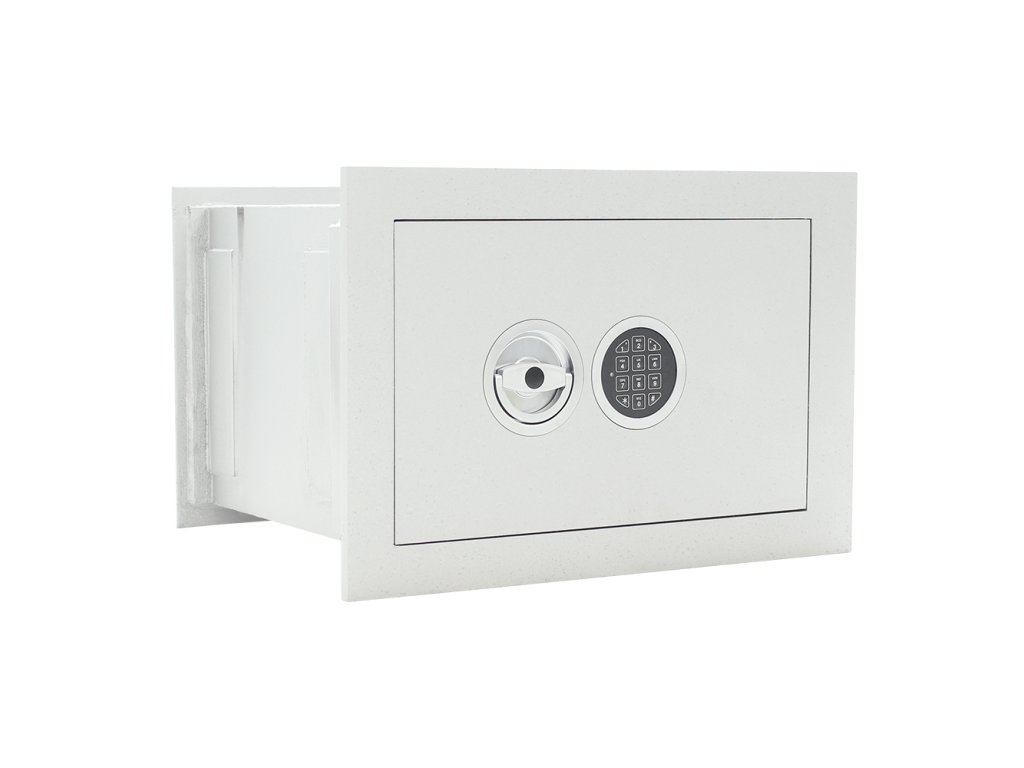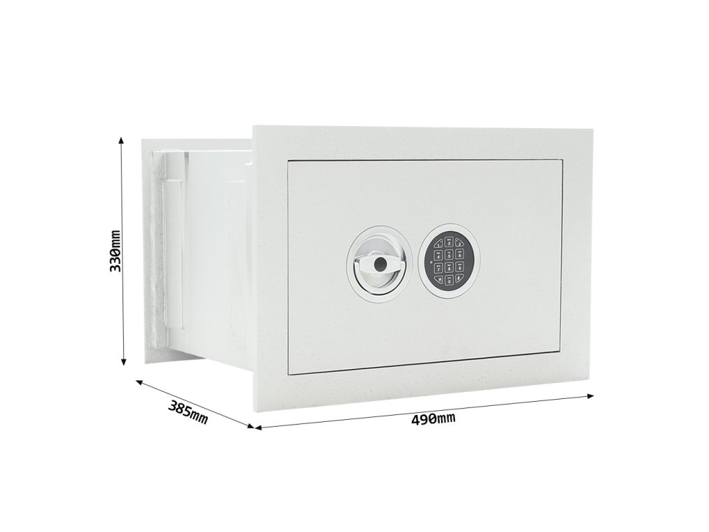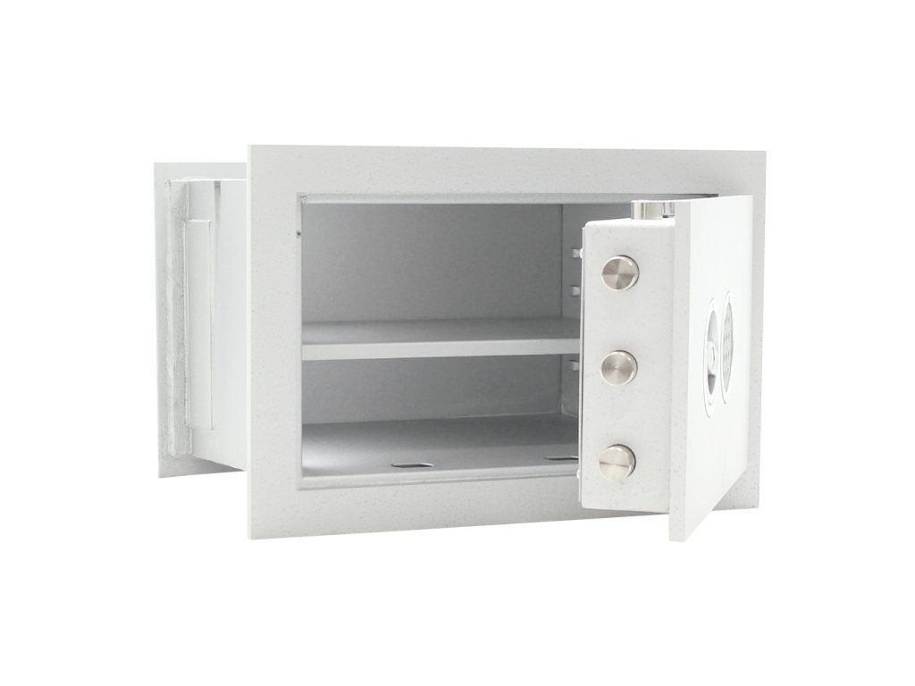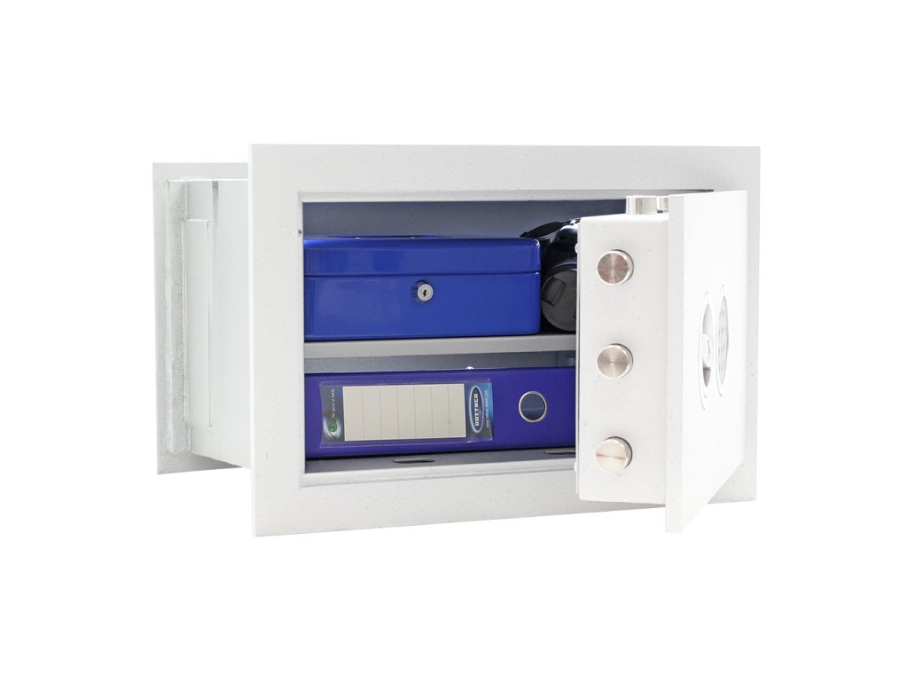 Hlavní výhody: Certifikovaný elektronický zámek Bezpečnostní třída I (ČSN EN 1143-1) Napájení 1 x 9V baterií (není součástí balení) Jednoplášťový korpus 4-stranný uzamykací mechanizmus Otevírání dveří do 90° Polička uvnitř Minimální tloušťka betonové obezdívky kolem trezoru je min. 10 cm Stěnový trezor z modelové řady Stone má certifikovaný elektronický zámek a certifikát bezpečnostní třídy I (ČSN EN 1143-1). Přehledná klávesnice zámku spolu se zámkem jsou napájeny klasickou 9V baterií. Trezor má jednoplášťový korpus a dveře se uzamykají 4-stranným uazmykacím mechanismem. Po otevření je trezorové dveře lze otevřít do 90°. Uvnitř se nachází polička pro přehlednější uspořádání uložených věcí. Pro osazení trezoru do zdi je třeba, aby betonová obezdívka kolem trezoru měla min. 10 cm.Doplňkové parametry