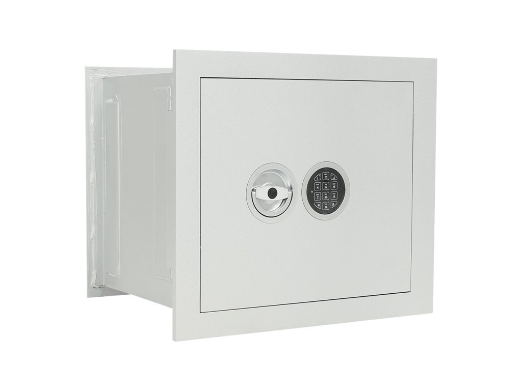 Hlavní výhody: Certifikovaný elektronický zámek Bezpečnostní třída I (ČSN EN 1143-1) Napájení 1 x 9V baterií (není součástí balení) Jednoplášťový korpus 4-stranný uzamykací mechanizmus Otevírání dveří do 90° Polička uvnitř Minimální tloušťka betonové obezdívky kolem trezoru je min. 10 cm Možnost doobjednání teleskopické police Možnost doobjednání teleskopické registratury Stěnový trezor Stone SE 45 EL Premium nabízí výbornou možnost, jak vhodně umístit trezor do vašeho domu, bytu nebo firmy. Trezor disponuje elektronickým zámkem, který je napájen klasickou 9V baterií. V případě vybití baterie jsou na vnější straně kontakty, na které stačí přiložit náhradní baterii. Kromě spolehlivého zámku je trezor držitelem bezpečnostní třídy I (ČSN EN 1143-1). Jednoplášťové provedení s tloušťkou 12 mm se uzamyká pomocí 4-stranného uzamykacího mechanismu. Po zadání správného kódu je možné dveře otevřít do úhlu 90°. Uvnitř trezoru je polička, aby vnitřek bylo rozděleno. V případě potřeby je možné poličku vyjmout. Nezapomeňte, že při osazování trezoru do zdi je třeba, aby byla obezdívka kolem trezoru v tloušťce minimálně 10 cm. K trezoru je možné dokoupit i doplňkovou výbavu. Váš nový trezor tak bude naplno splňovat vaše požadavky. Kování zámku zvyšuje celkovou vnější hloubku trezoru o 20 mm.Doplňkové parametry