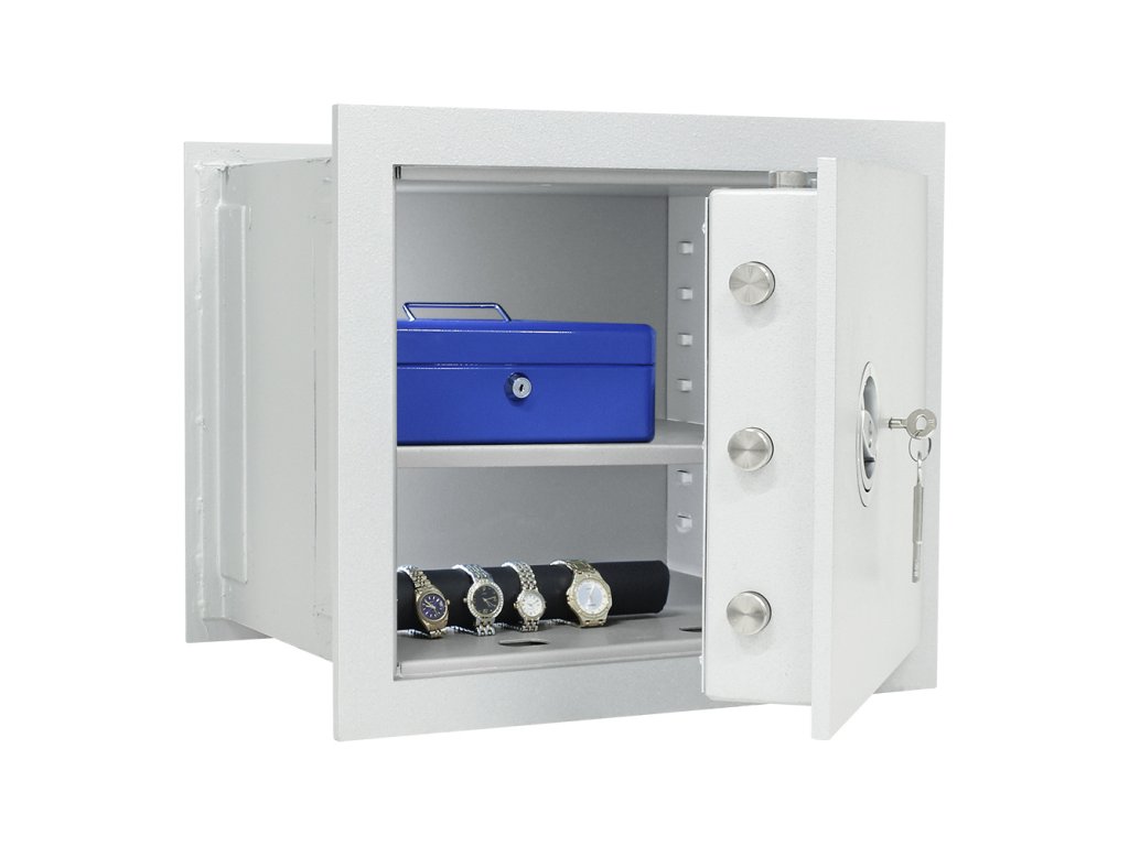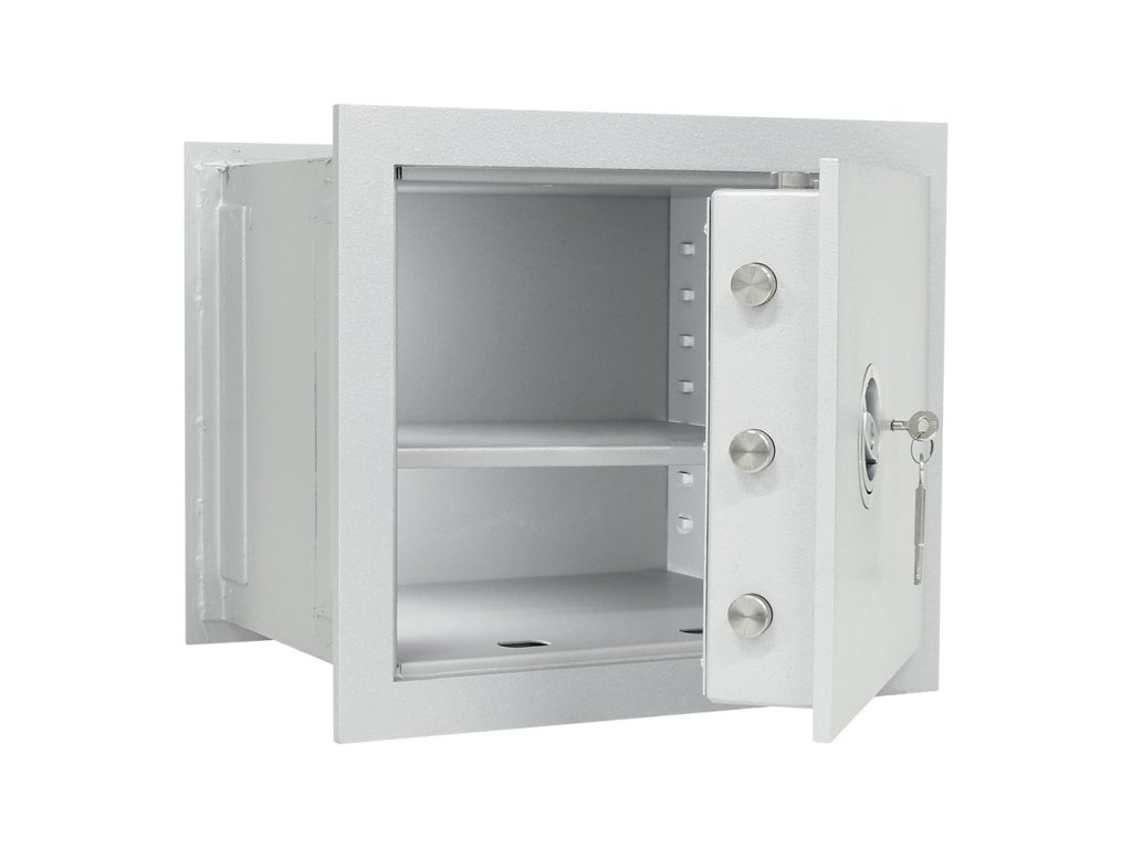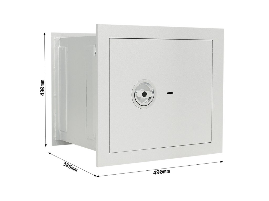 Hlavní výhody: Certifikovaný trezorový zámek Bezpečnostní třída I (ČSN EN 1143-1) Jednoplášťový trezor 4-stranný uzamykací mechanizmus Otevírání dveří do 90° Polička uvnitř Minimální tloušťka betonové zdi kolem trezoru je min. 10 cm Možnost doobjednání teleskopické police Možnost doobjednání teleskopické registratury Trezor do zdi je výbornou volbou jak pro domácí použití, tak i pro kanceláře. Uložené cennosti a dokumenty budou v bezpečí za trezorovým zámkem dodávaným s 2 klíči na otevření. Trezor disponuje bezpečnostní třídou I (ČSN EN 1143-1) a jednoplášťovým provedením. Při jeho instalaci do zdi je třeba, aby kolem trezoru zůstala betonová stěna tloušťky nejméně 10 cm. Trezor tak bude bezpečně uložen a spolu s 4-stranným uzamykacím mechanismem ochrání uložené věci. Uvnitř se nachází polička, která umožní rozdělit prostor podle vašich potřeb. Výhodou je možnost doobjednat doplňkovou výbavu.Doplňkové parametry