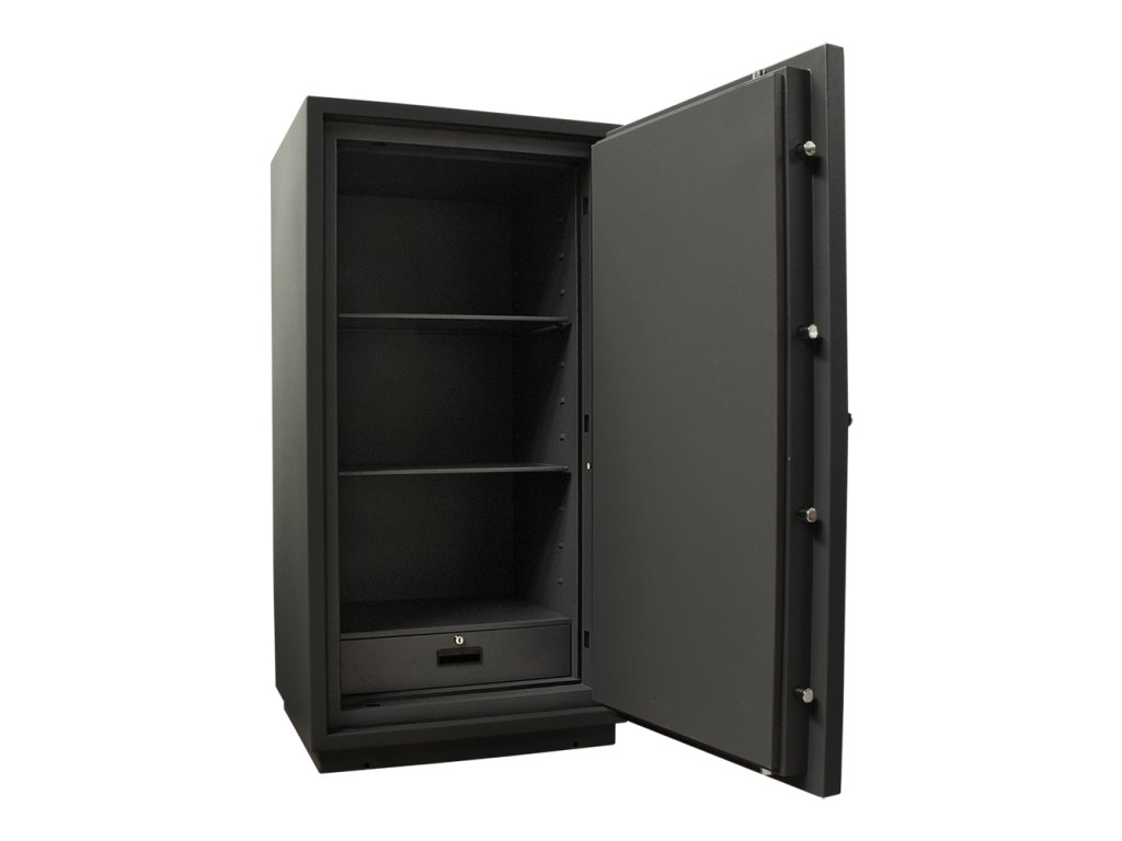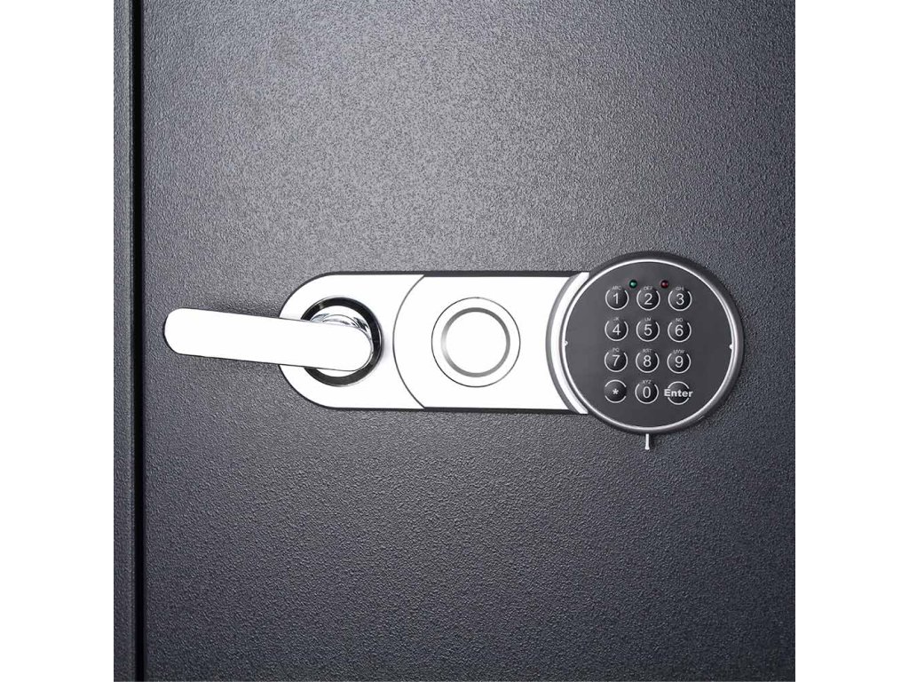 Hlavní výhody: Elektronický zámek Ohnivzdorný certifikát LFS 60 P (EN 15659) Ohnivzdornost po dobu 60 minut Možnost nastavení 2 kódů, hlavní a uživateľský (tzv. master a user kód) Vnitřní schránka s cylindrickým zámkem a 2 klíči Napájení 4 x 1,5V AAA bateriemi (nejsou současti balení) 2 poličky uvnitř Otvory na ukotvení na spodní straně sejfu Černý sejf z modelové rodiny Sydney nabízí největší úložný prostor ze všech sejfem Sydney. Uložené cennosti, šperky, šanony nebo pokladničky budou zajištěny elektronickým zámkem spolu s mechanickým nouzovým otevíráním. Sejf je vhodným řešením i do hotelů, penzionů nebo jiných hotelových zařízení, kde je lepší mít 2 kódy. Zámek umožňuje nastavit nejen hlavní ale i uživatelský kód. Sejf ochrání před ohněm až po dobu 60 minut, jelikož disponuje ohnivzdorným certifikátem LFS 60 P. Uvnitř se nacházejí 2 poličky a vnitřní schránka. Rozložení uložených věcí tak můžete udělat podle svých představ. Na spodní straně sejfu jsou připraveny otvory pro ukotvení. Materiál na ukotvení je součástí balení. Kování zámku zvyšuje celkovou vnější hloubku trezoru o 25 mm.Doplňkové parametry