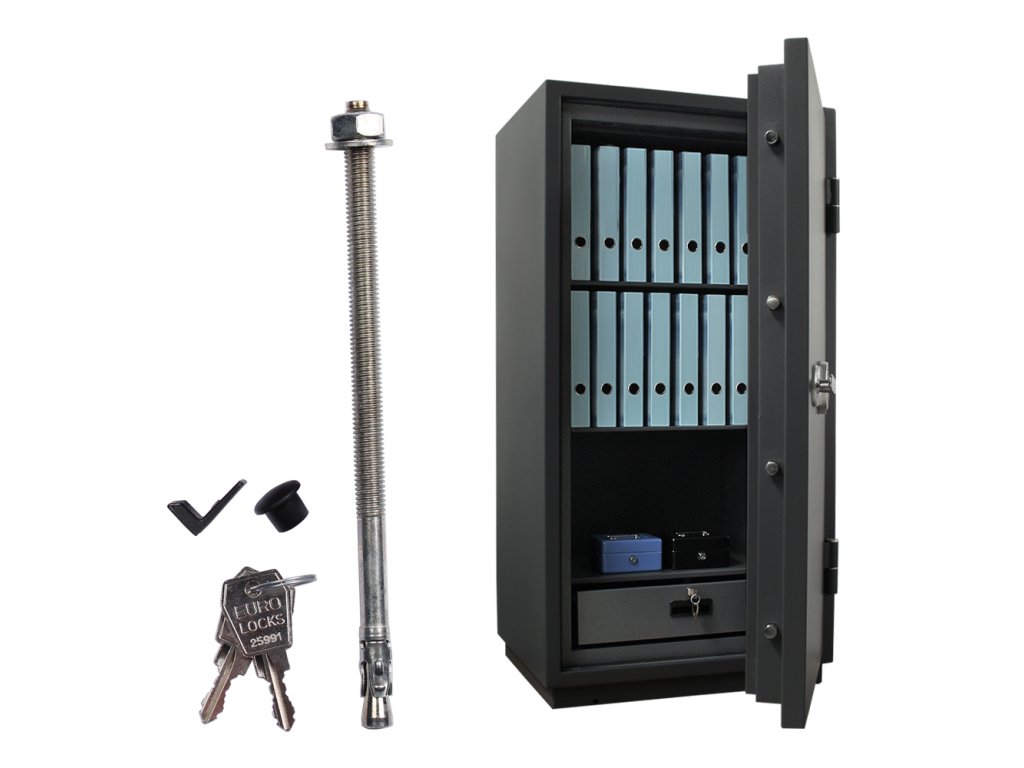 Eektronický zámek a certifikát LFS 60 P Ohnivzdornost po dobu 60 minut Vnitřní schránka 2 poličky uvnitř