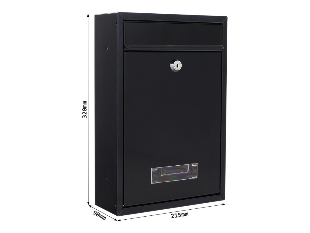 Hlavní výhody: Cylindrický zámek s 2 klíči Prvotřídní nerezavějící ocel Jmenovka Přední vhod pro poštu Možnost skládat do sestav Černá poštovní schránka Tarvis nabízí přední vhoz pro prijem pošty. Zároveň je vhod chráněn krytkou, která zabraňuje vnikání vody a jinych nečistot. Doručené bude bezpečně uložena za dvířky s cylindrickým zámkem dodávaným spolu s 2 klíči. Zpracování poštovní schránky Tarvis odolá povětrnostním vlivům i korozi. Užitečným doplňkem je jmenovka ve spodní části. Schránku Tarvis lze skládat do sestav, a tedy je ideální pro paneláky, bytovky a vnitrobloku. Na zadní straně se nacházejí otvory pro upevnění. Materiál k upevnění je součástí balení.Doplňkové parametry
