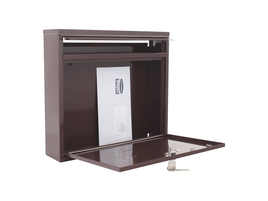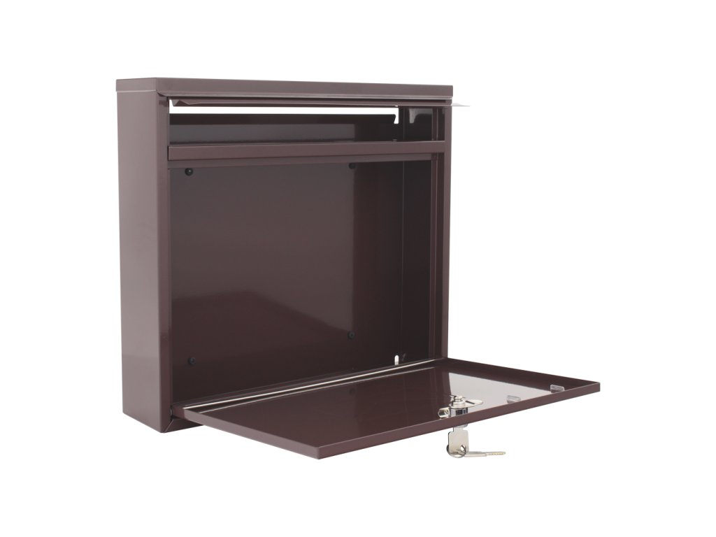 Hlavní výhody: Cylindrický zámek s 2 klíči Přední i zadní vhod pro poštu Jmenovka Možnost skládat do sestav Hnědá poštovní schránka z modelové rodiny Teramo nabízí osvědčený design v kvalitním provedení. Horní i zadní vhod pro poštu umožňuje několik možností, jak a kam schránku umístit. Poštovní schránka se tak hodí do domu nebo i do bytu nebo bytového komplexu. Výhodou je možnost skládání schránky do sestav. Stává se tak jasnou volbou při zařizování vnitrobloku. Zároveň je na schránce místo pro jmenovku. Pošťák se tak více nemůže splést. Velké přední dvířka umožňují poštu pohodlně vybrat a následně schránku opět uzamknout klíčem.Doplňkové parametry