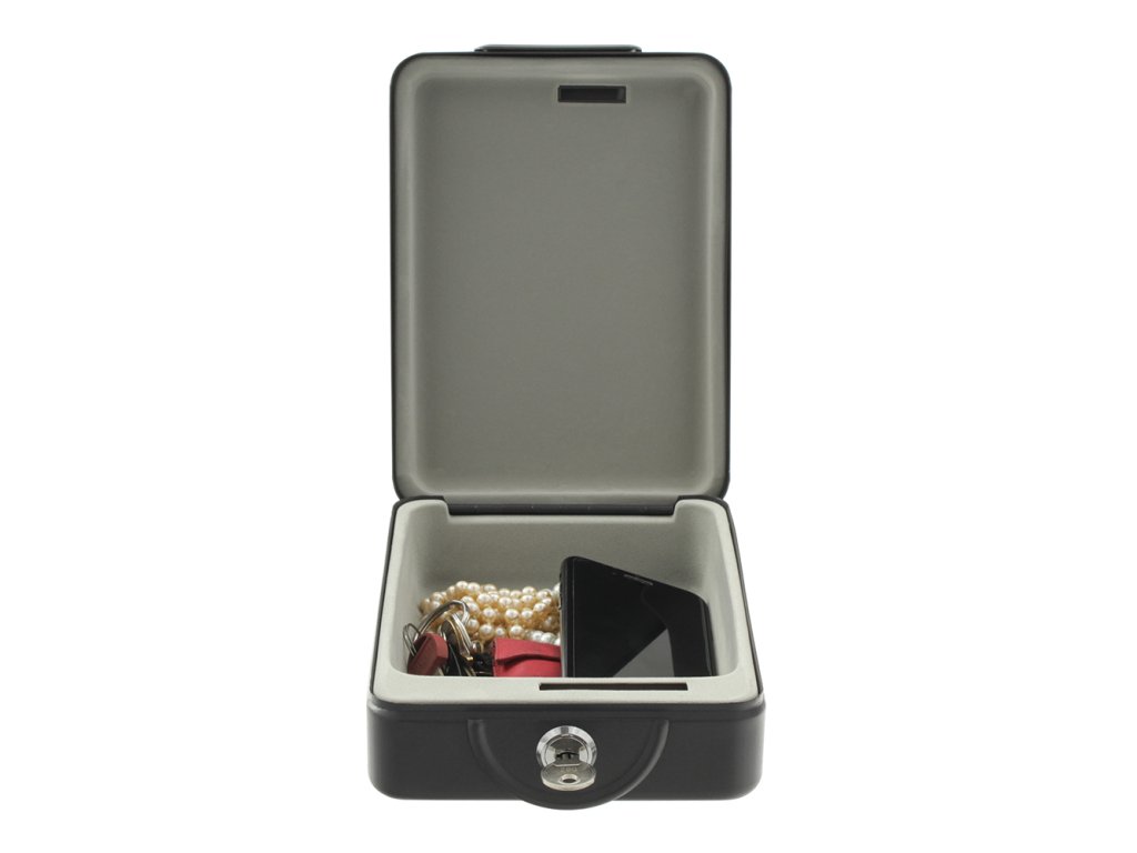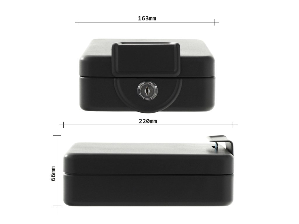 Hlavní výhody: Cylindrický zámek se 2 klíči Praktický držák Variabilní využití Jednoduchý systém upevnění zacvaknutím Malý ale velmi praktický cestovní mini sejf nabízí prostor pro malé věci během vašich cest. Vezměte si s sebou mobil, doklady nebo malé šperky. Cylindrický zámek se postará o uzamčení sejfu. Spolu se sejfem dodáváme i praktický držák, do kterého se mini sejf zacvakne. Držák upevníte tam, kam potřebujete. Mini sejf se pak do držáku zacvakne a drží opravdu pevně. Výhodou je možnost koupě několika držáků a jejich upevnění na místa, kde se nejčastěji pohybujete. Následně na to už jen mini sejf přesouváte z držáku do držáku. Jednoduchý ale velmi praktický a účinný systém. Materiál k upevnění je součástí balení.Doplňkové parametry