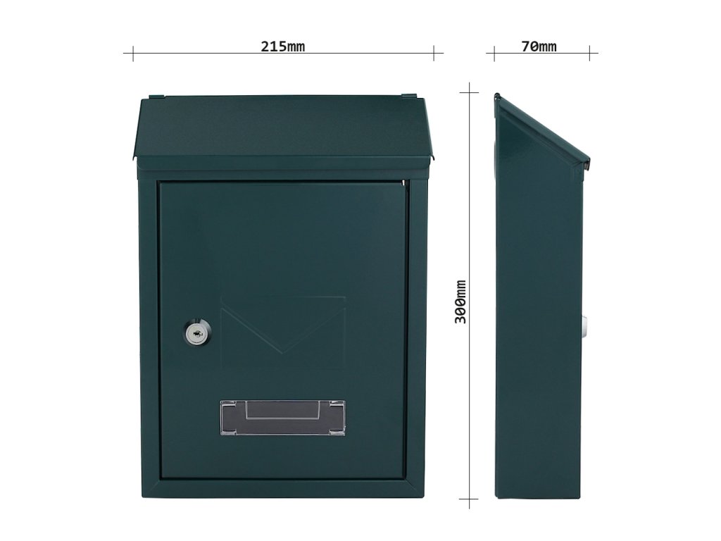 Hlavní výhody: Cylindrický zámek s 2 klíči Kvalitní povrchová úprava s pozinkováním Odolnost vůči korozi a povětrnostním vlivům Horní vhod pro poštu Design vhodný i do interiéru doplněn jmenovkou Zelená poštovní schránka Udine poskytuje široké možnosti využití. Doručené je chráněna klasickým cylindrickým zámkem s 2 klíči. Kvalitní zpracování umožňuje použití nejen v interiréri nebo i exteriéru, a to díky výborné odolnosti proti povětrnostním podmínkám a korozi. Horní a zadní vhod pro poštu a poštovní zásilky umožňuje namontovat schránku i např. na bytové dveře a přijímat tak poštu v pohodlí domova. Schránka má prostor na jmenovku a krytka nad horním vhozem zabraňuje vnikání deště a nečistot do schránky. Materiál k upevnění schránky je součástí balení.Doplňkové parametry