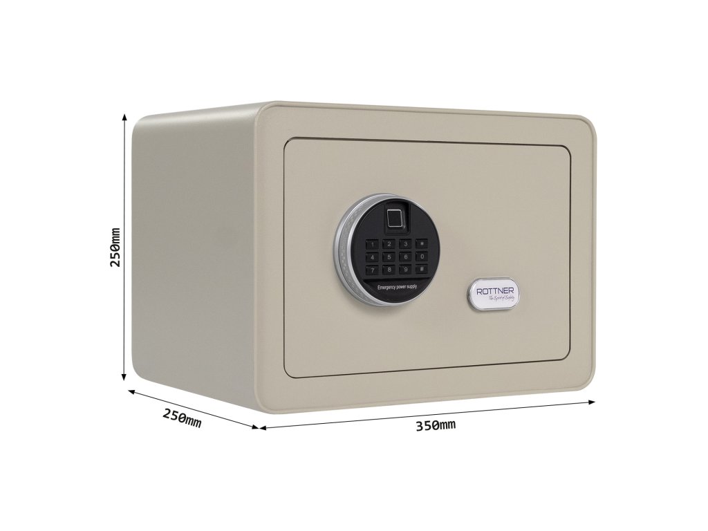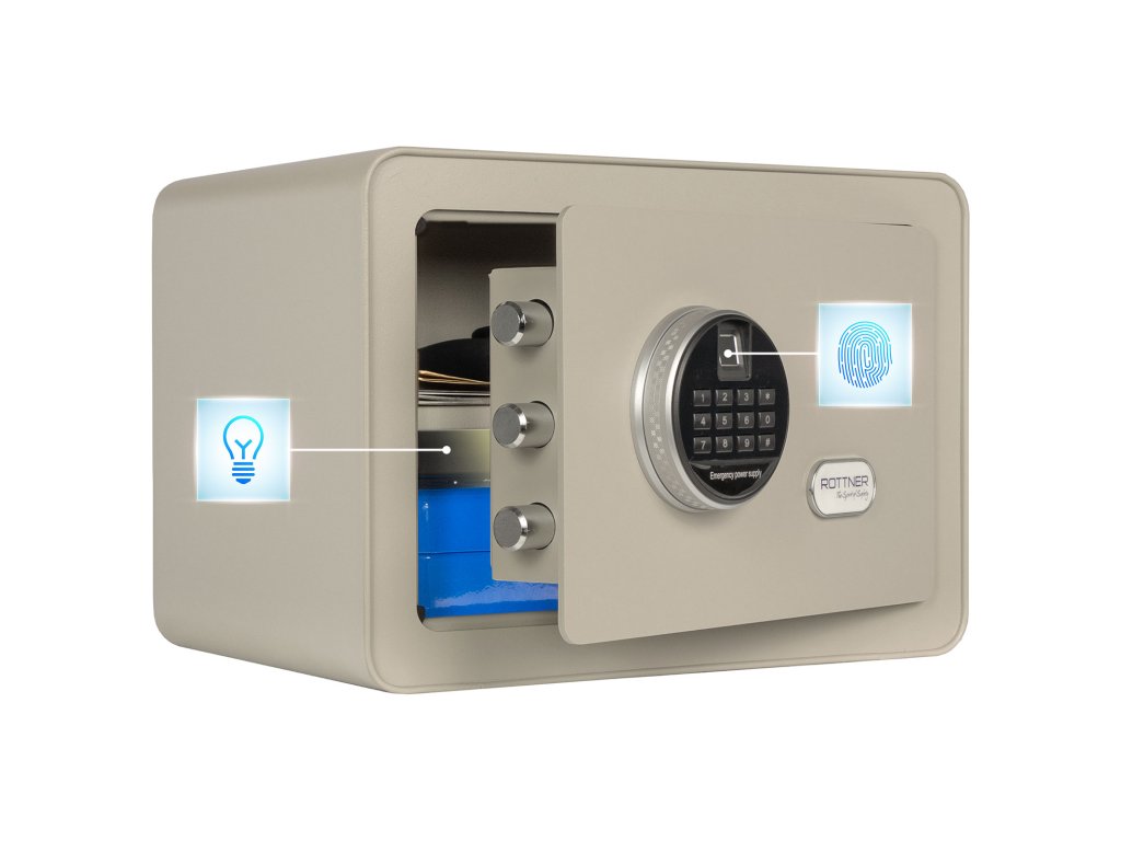 Hlavní výhody: Jednoplášťový sejf Elektronický zámek včetně snímače otisků prstů 1 hlavní kód / 1 uživatelský kód Mechanické nouzové otevírání klíčem Tloušťka dveří s klávesnicí: 60 mm 4x AA baterie - nejsou součástí dodávky Montáž: 2 otvory v zadní stěně a 4 otvory v podlaze - Ø 10,5 mm Včetně montážního materiálu Nábytkový trezor Rottner Vintage je kompaktní, stylový trezor, který se hodí do každé domácnosti nebo hotelového pokoje. Lze jej snadno vzít s sebou při stěhování. Tento nábytkový trezor má elektrický zámek na otisk prstu, který lze v případě nouze otevřít i mechanicky pomocí klíče. Otvory vyvrtané do zadní stěny a podlahy usnadňují instalaci. Řada Vintage je k dispozici v několika barvách. Kotvicí materiál je součástí dodávky.Doplňkové parametry