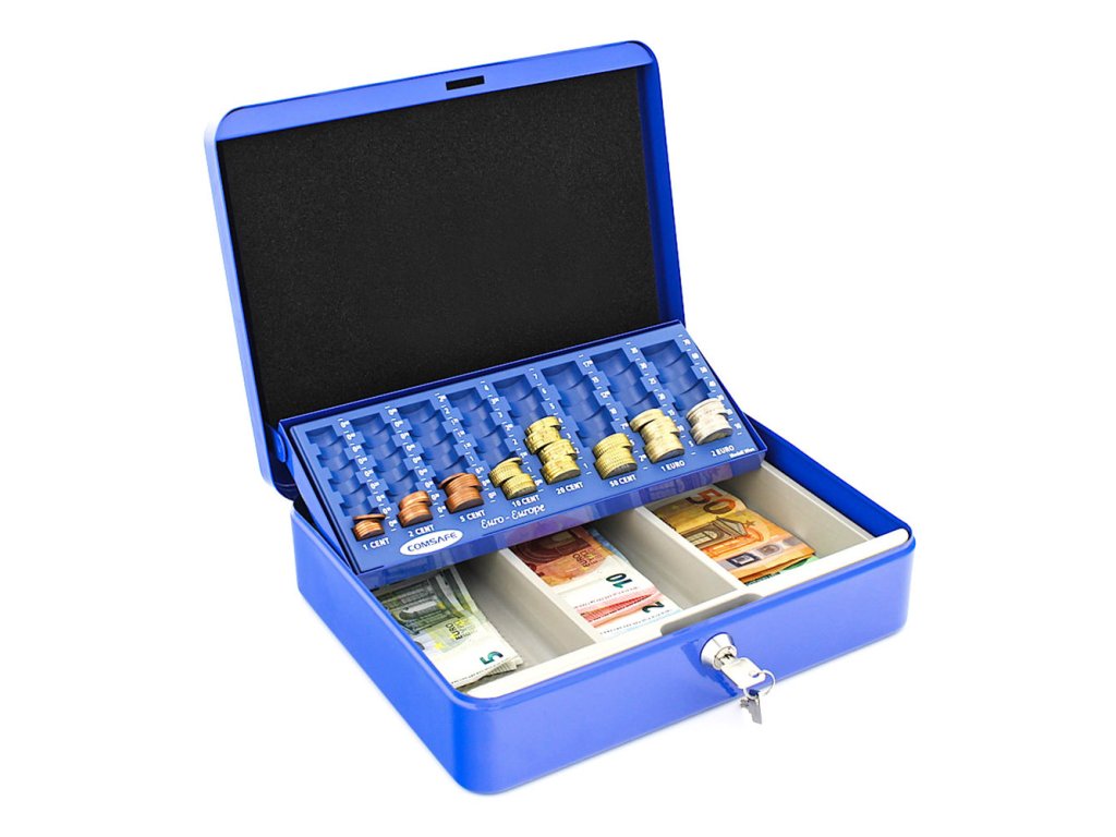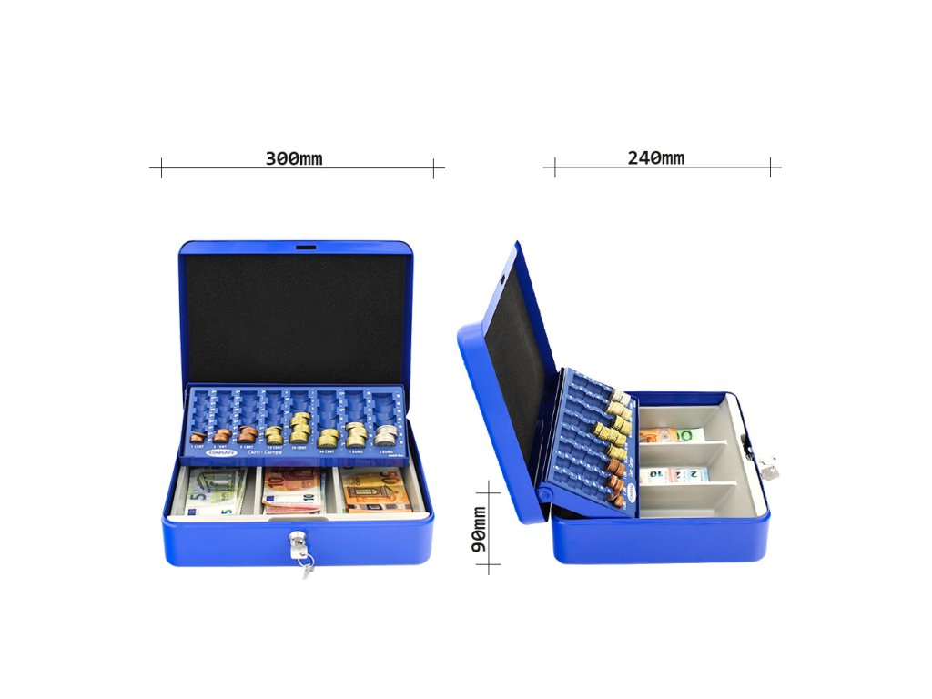 Kompaktní rozměry a sklopná pozinkovaná rukojeť Praktické přihrádky pro eurobankovky Mincovník pro euromince