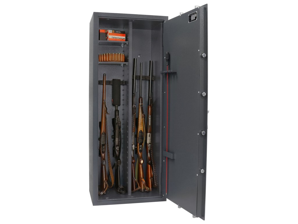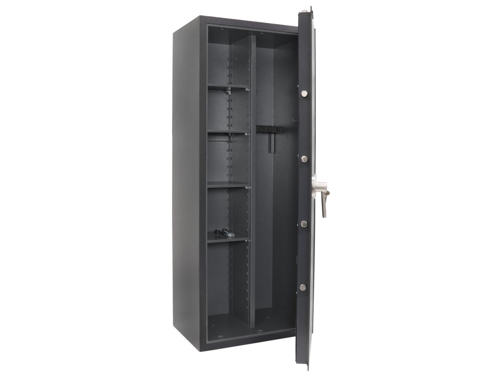 Certifikovaný trezorový zámek Bezpečnostní třída O (ČSN EN 1143-1) Pro 10 dlouhých zbraní Možnost přestavby na verzi se 4 poličkami + 5 dlouhých zbraní