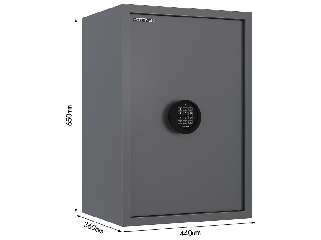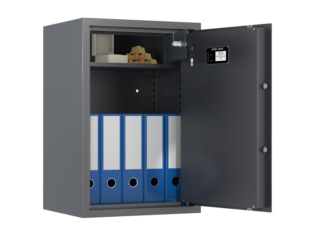 Certifikovaný elektronický trezorový zámek třídy A podle ČSN EN 1300 Bezpečnostní třída S1 (ČSN-1445+A1:2024) Splňuje podmínku minimálně 15 RU podle normy ČSN EN 1143-1:2020 Možnost úschovy také zbraní a munice podle č. 190/2003 Sb. Dodáváno s 1 vyjímatelnou policí Jednoplášťový nábytkový trezor